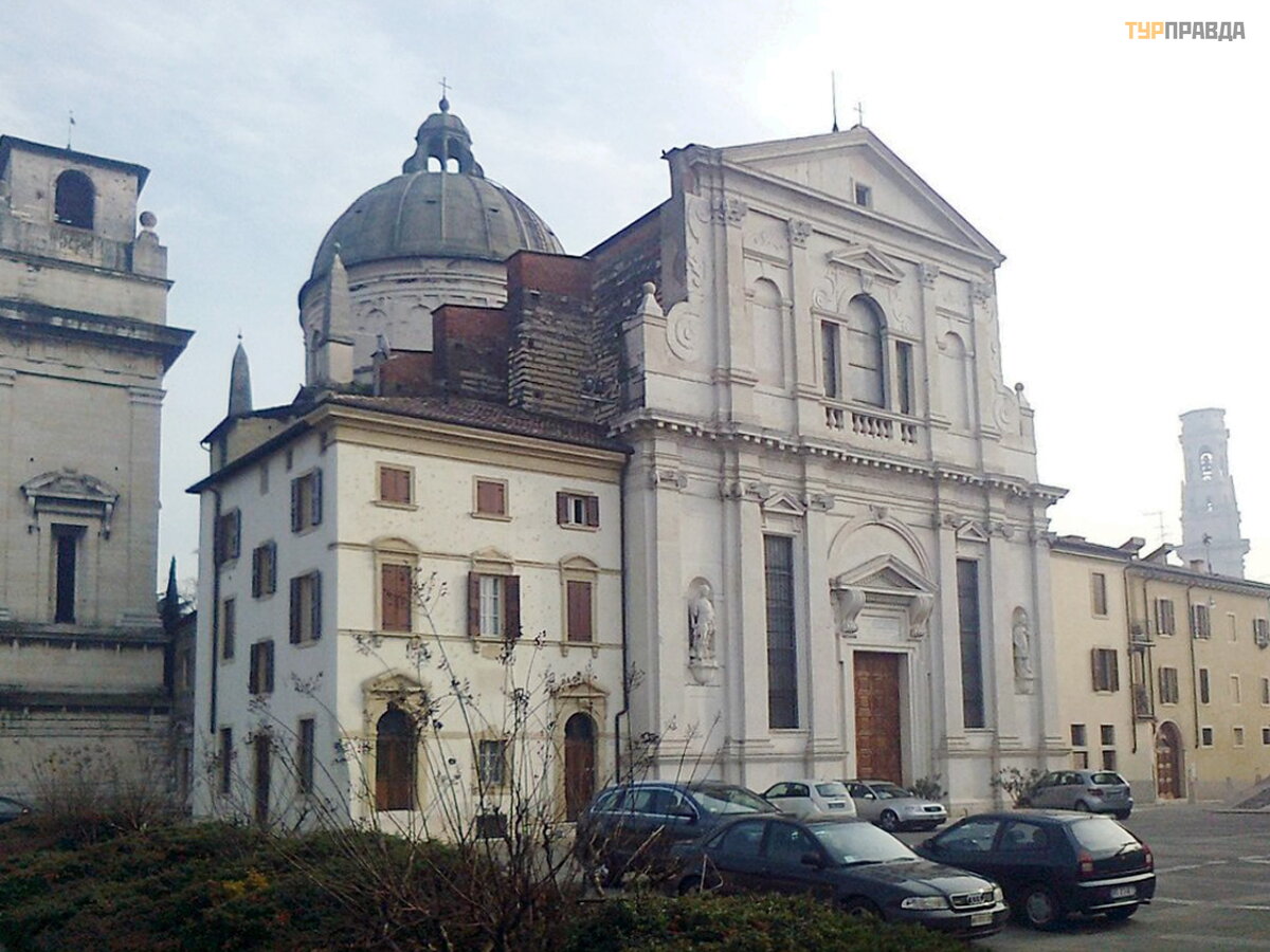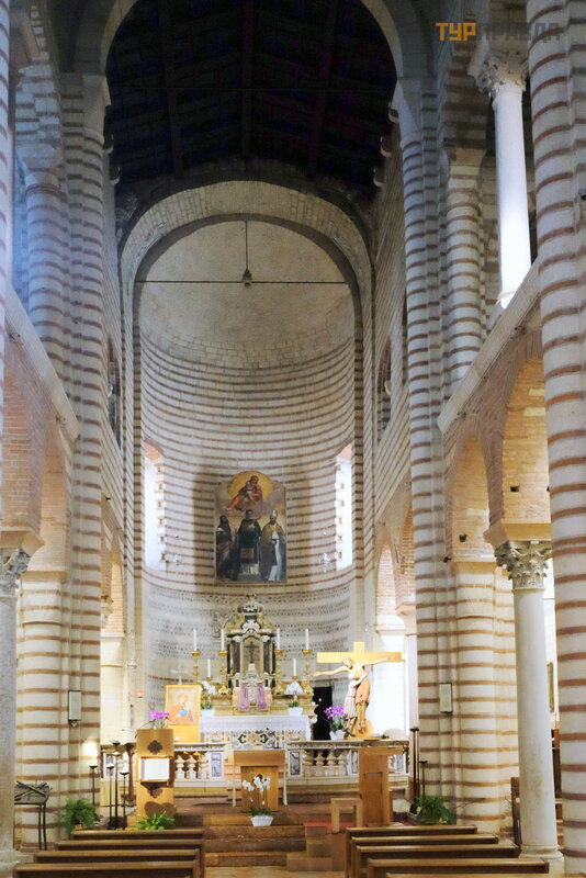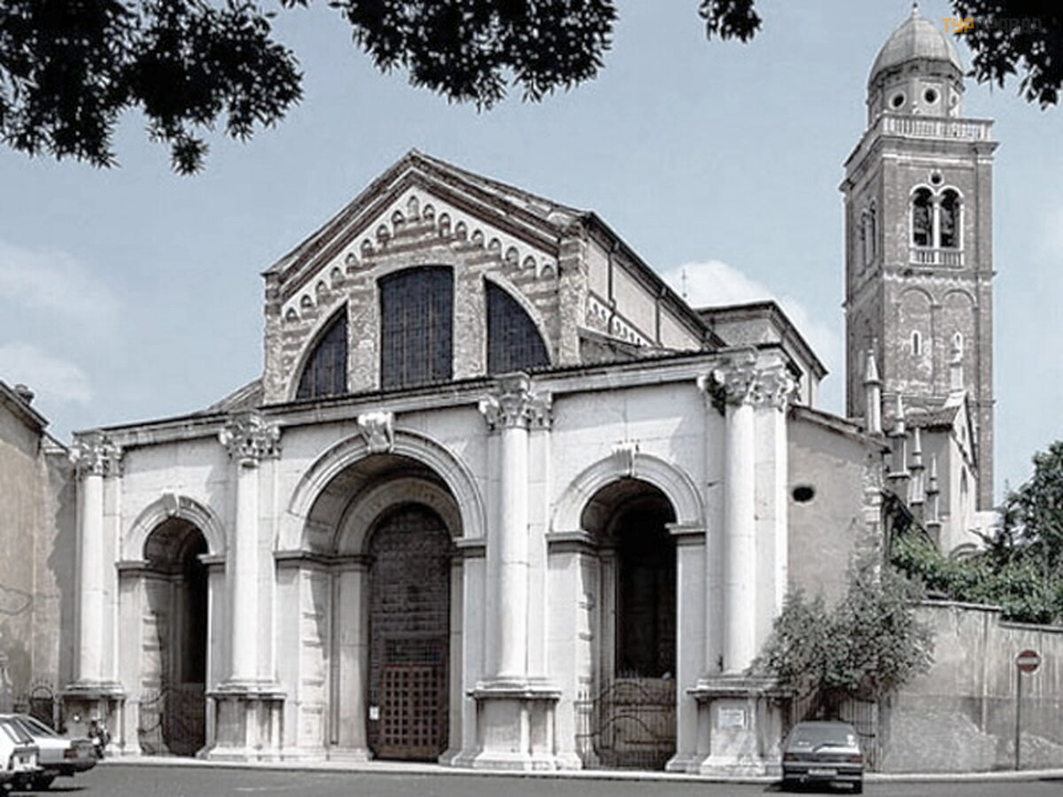 Zbudowany przez mnichó w benedyktynó w. W 1533 r. w pobliż u wybudowano dzwonnicę z 6 dzwonami, a pod koniec XVI wieku architekt Michele Sanmicheli przebudował gotycką fasadę w stylu klasycystycznym – dodał trzy portale z biał ego marmuru.