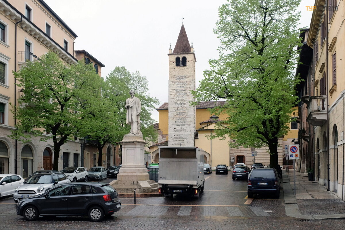 Naprzeciwko, za pomnikiem poety i osoby publicznej Aleardi na mał ym placu znajduje się inny koś ció ł o tej samej nazwie - Piazzetta Santi Apostoli.