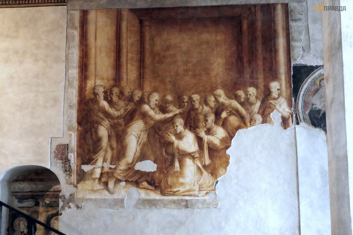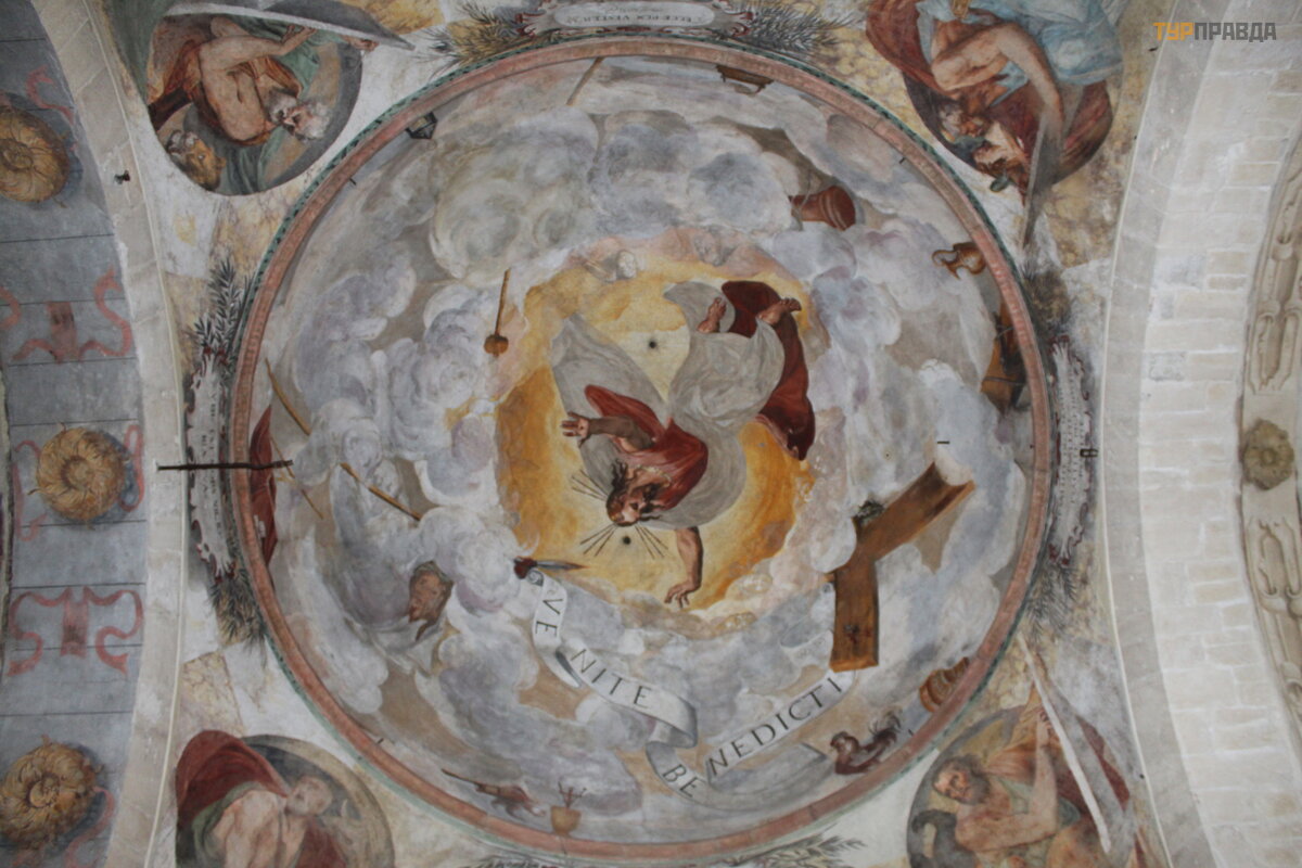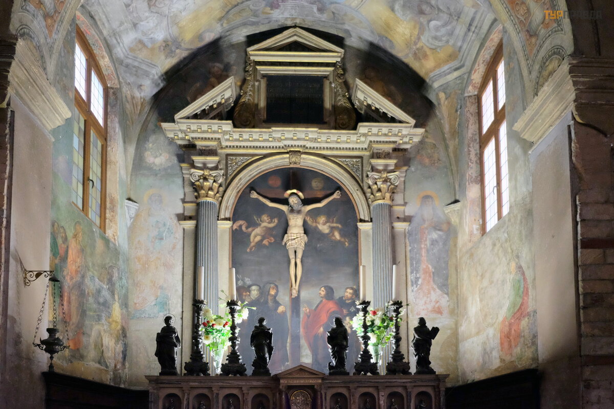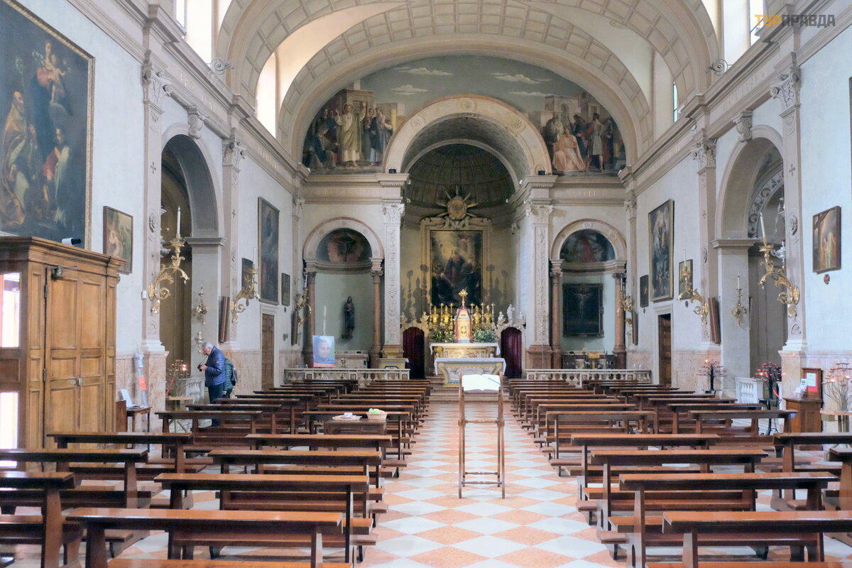 Na ś cianach koś cioł a moż na zobaczyć freski autorstwa Nicolò Giolfino i Francesco Caroto. . .
