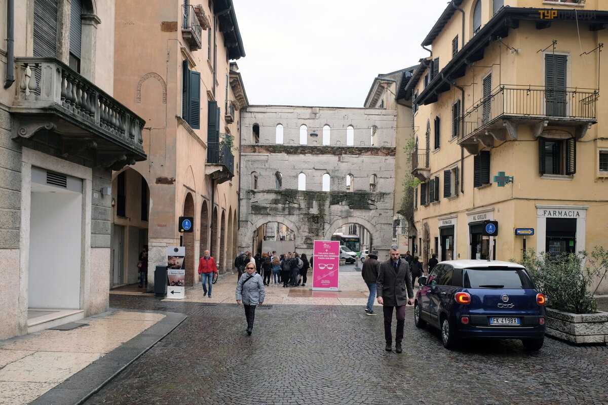 Mijamy Porta Borsari (Porta Borsari) - zabytek staroż ytnej architektury rzymskiej w mieś cie. Porta Borsari został a zbudowana w I wieku naszej ery. mi. jako placó wka wojskowa na poł udniu miasta.