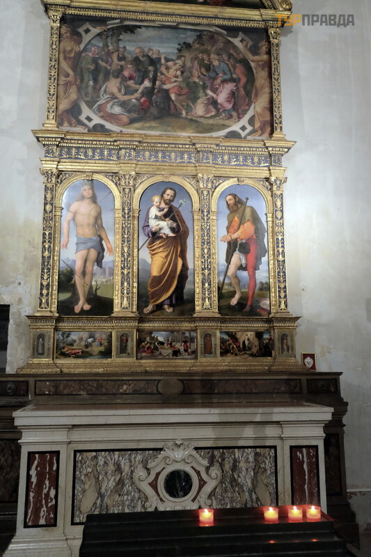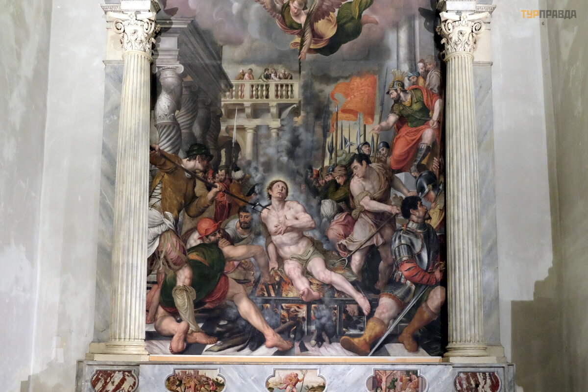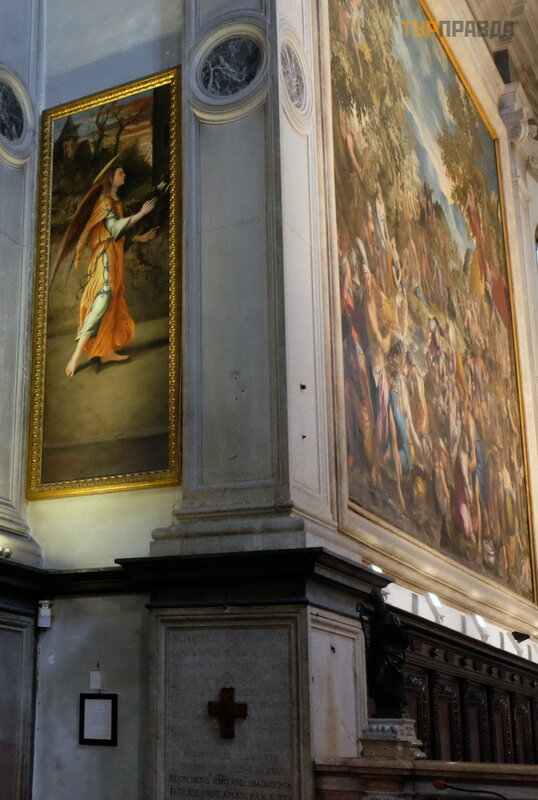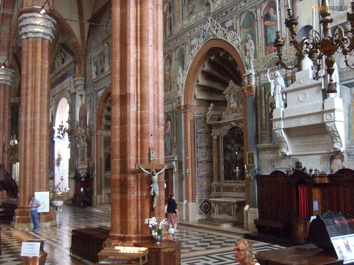 Wś ró d dzieł sztuki w nawach bocznych warto zwró cić uwagę na freski „Adoracja Trzech Kró li” Liberale da Verona, podziwiane przez Vasarei „Zł oż enie do grobu z czterema ś wię tymi” autorstwa Nicolo Giolfino. . .
