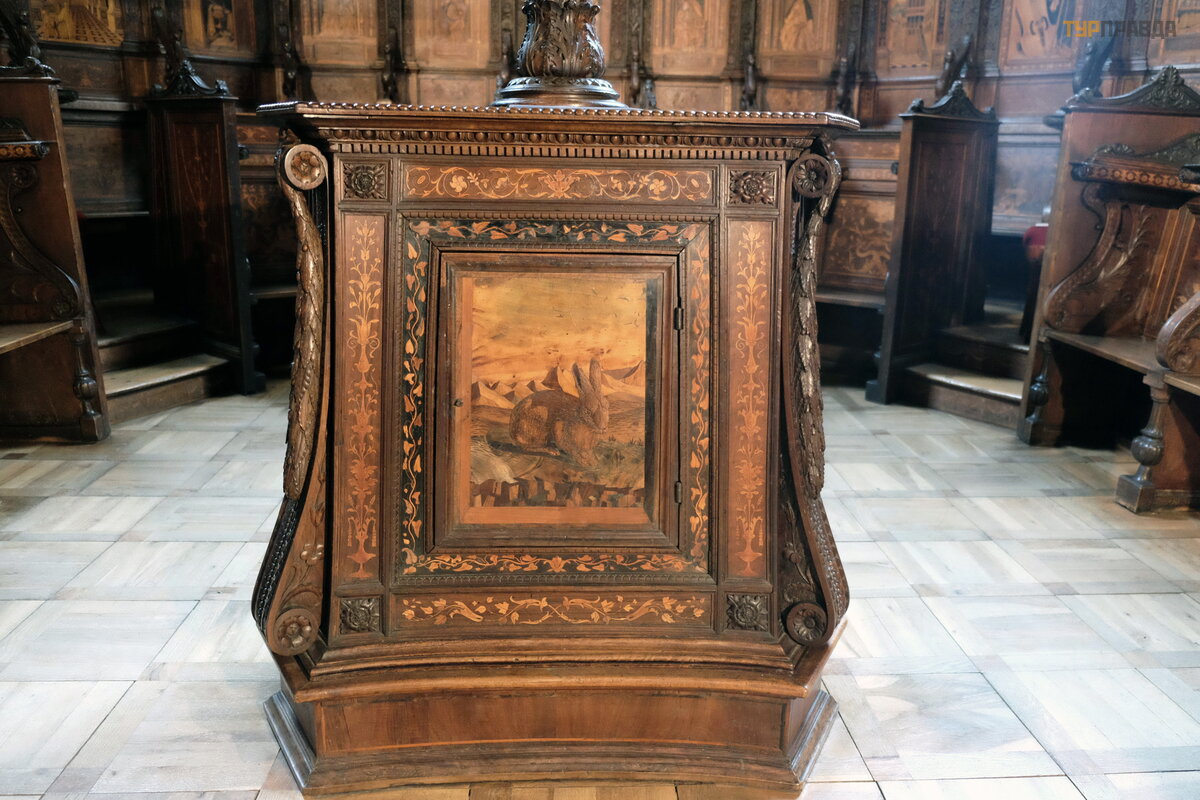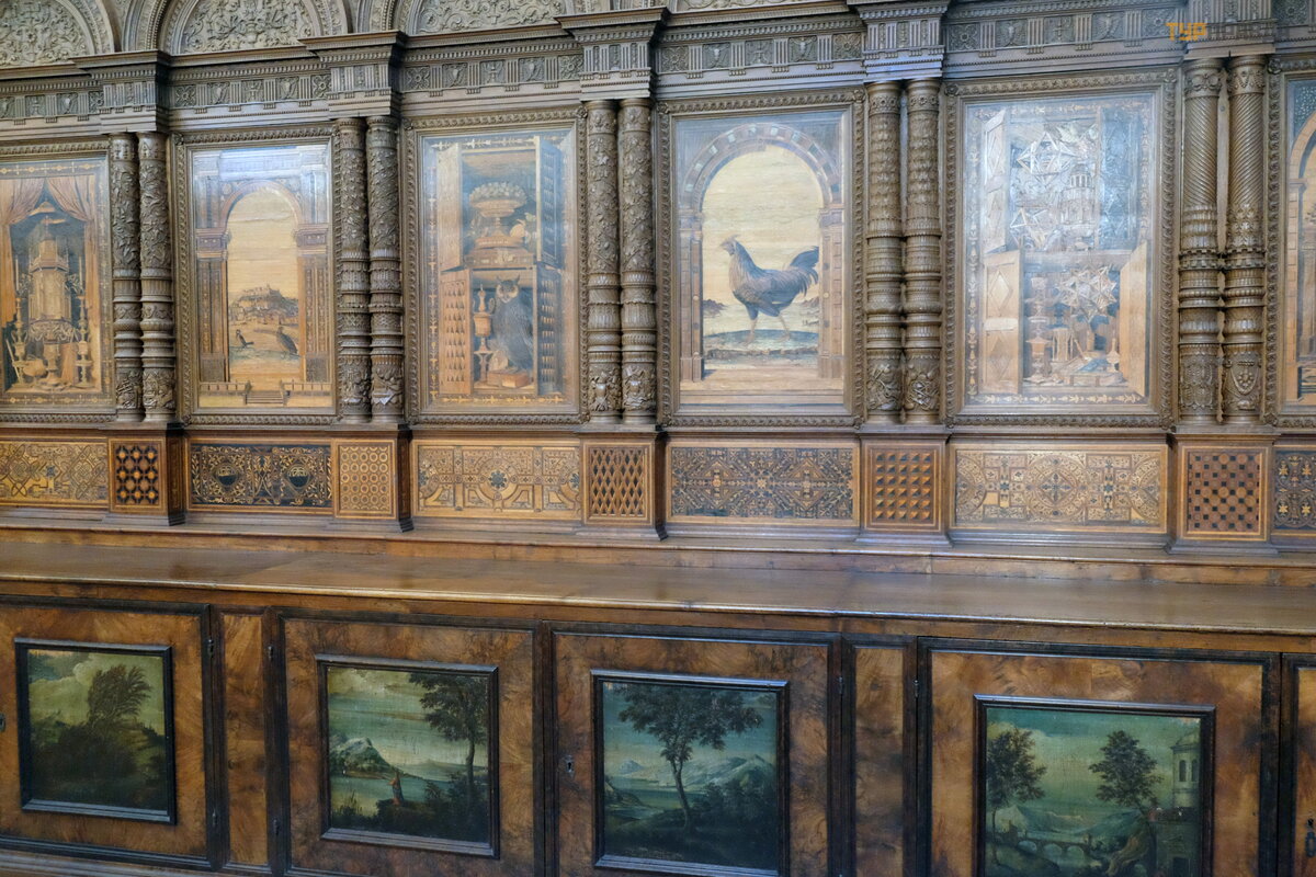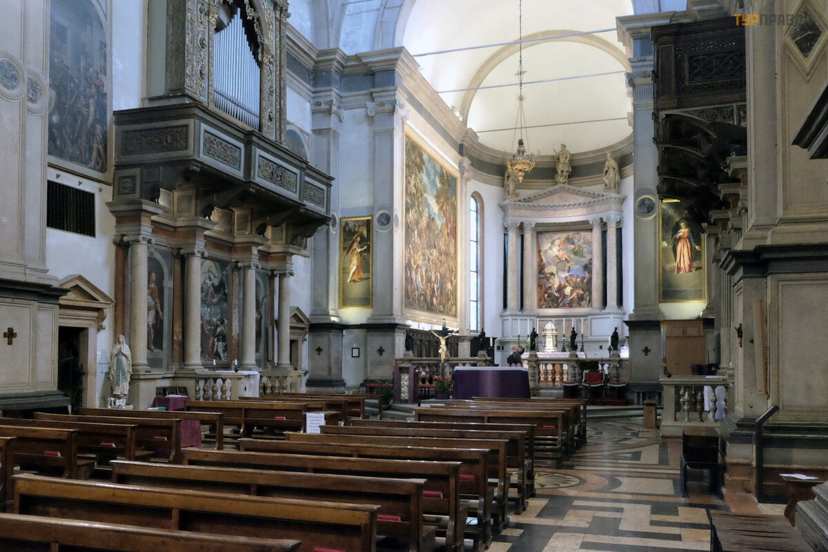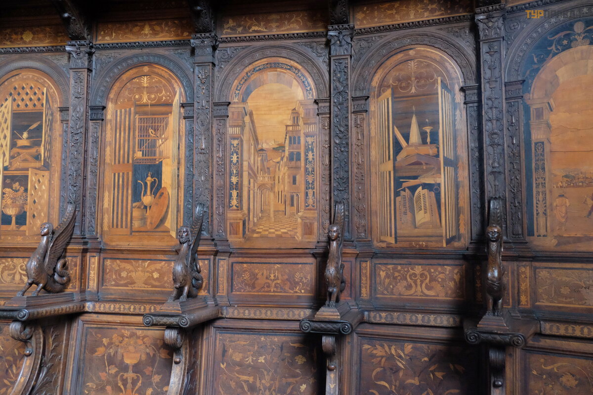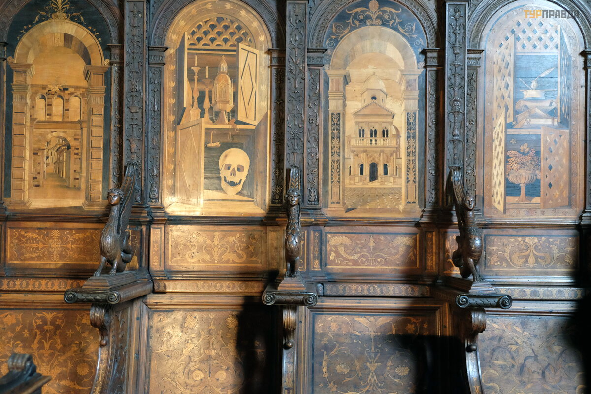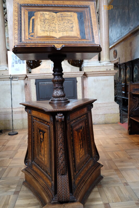 Koś ció ł sł ynie z tego, ż e w XV wieku wybitny artysta, mistrz intarsji Fra Giovanni da Verona, wyrzeź bił drewniane stalle i krzesł a stasidiowe do zakrystii. Udekorował je takż e pejzaż ami i martwymi naturami.