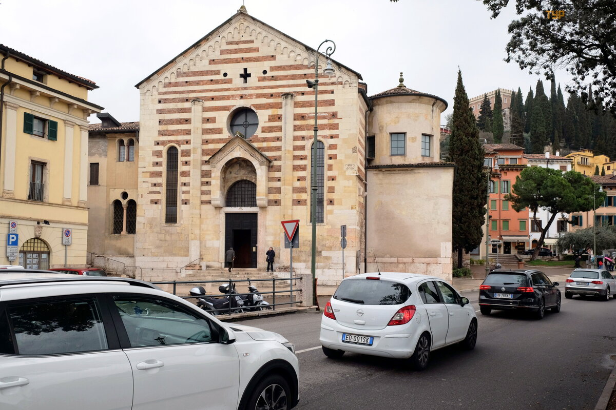Pojechaliś my na gł ó wną autostradę Werony, któ ra biegnie przez cał e Stare Miasto. Ulice (Corso) nastę pują po sobie pod ró ż nymi nazwami: Castelvecchio, Cavour, Bossano, Sant'Anastasia. Bardzo blisko znajduje się koś ció ł San Lorenzo, obok któ rego biegną po drodze wszyscy turyś ci. Aby go znaleź ć , musisz przejś ć przez ostry ł uk z Cavour Avenue.
