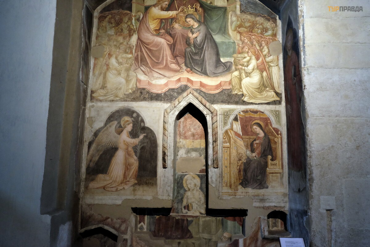 Ś ciany koś cioł a ozdobione są freskami i malowidł ami z XIII-XV wieku.