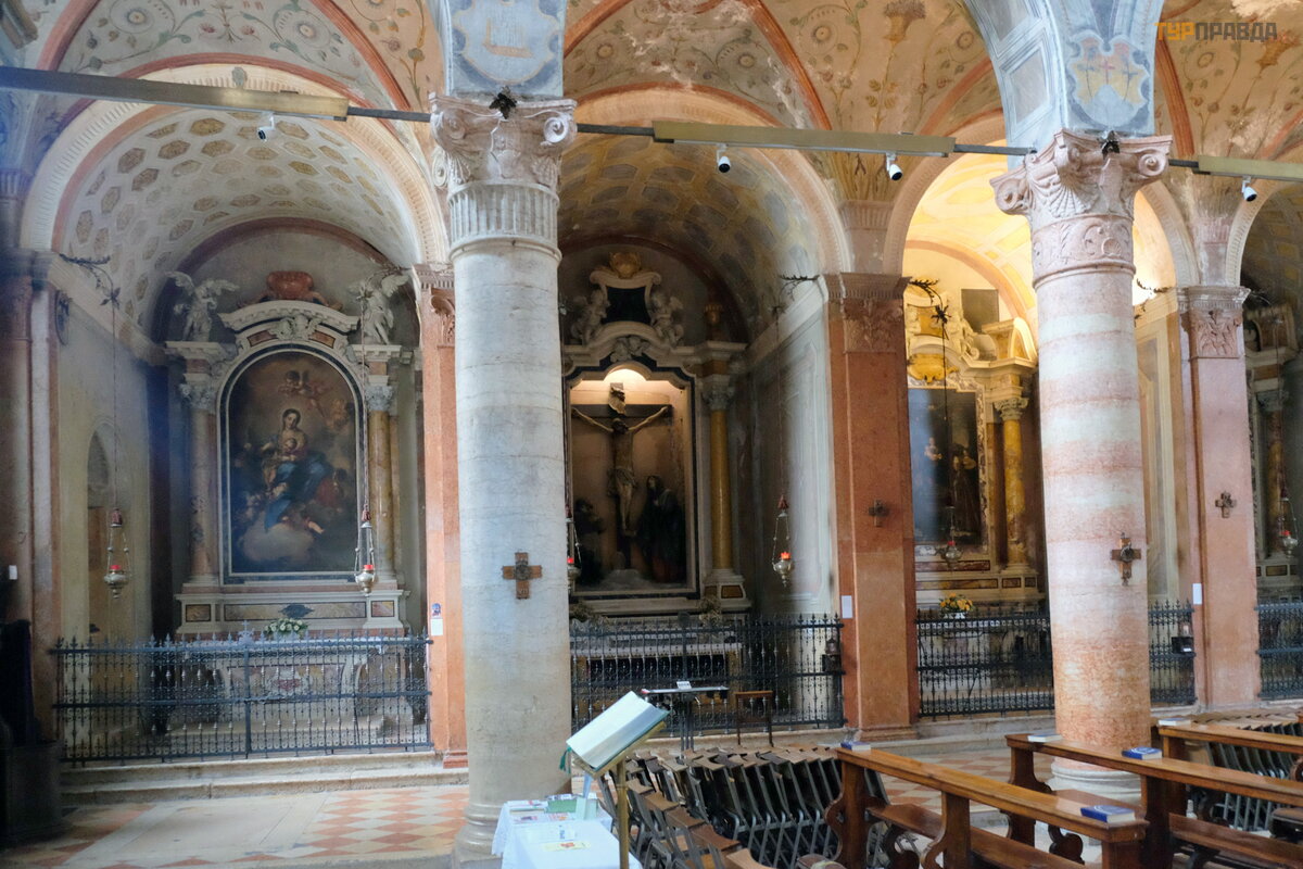 Wielu pielgrzymó w z ró ż nych czę ś ci ś wiata przybywa tutaj, aby zobaczyć Kaplicę Niewinią tek z 1620 roku, zbudowaną w celu zachowania relikwii czterdziestu mę czennikó w, pię ciu ś wię tych biskupó w Werony i czterech niemowlą t zabitych na rozkaz Heroda. Wnę trze koś cioł a zdobią freski z VIII wieku.