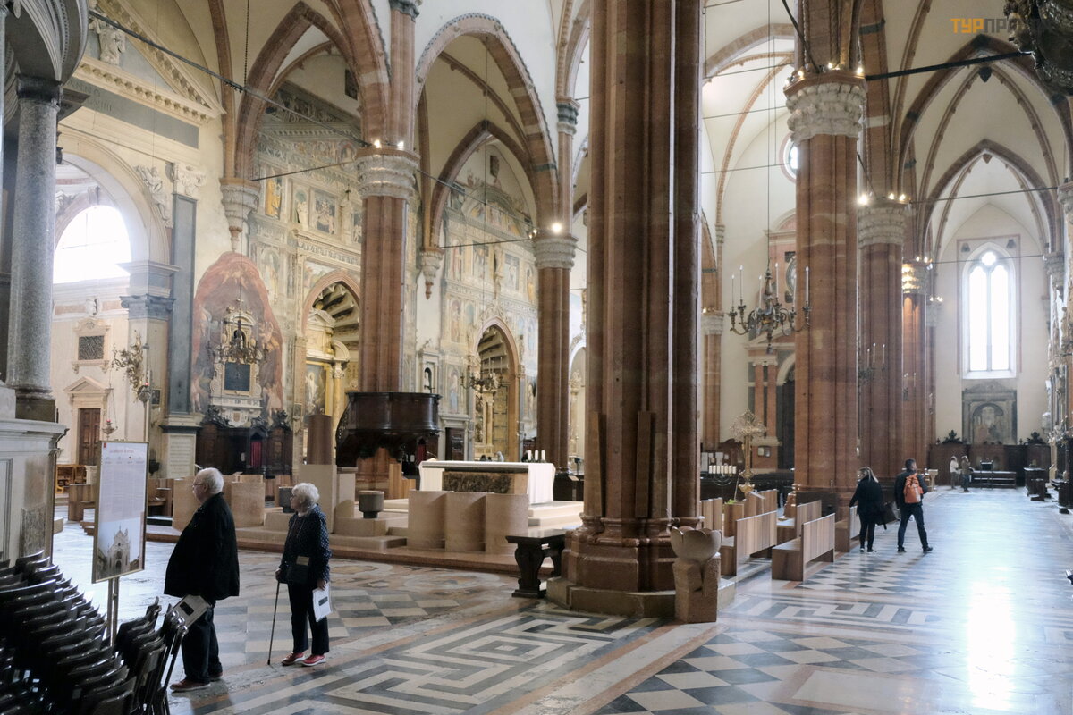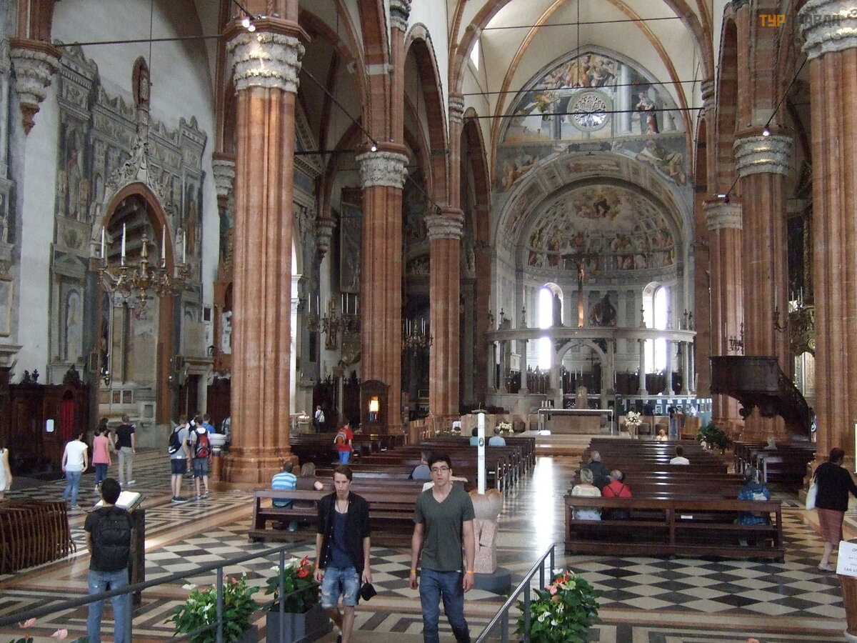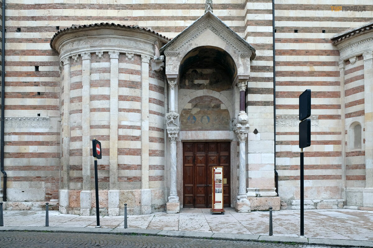 Po przeką sce zeszliś my na dó ł . Kontynuowaliś my marsz przez koś cioł y w Weronie. Nastę pna był a katedra w Weronie, obję ta naszą subskrypcją . Ś wią tynia został a konsekrowana w 1187 roku,
