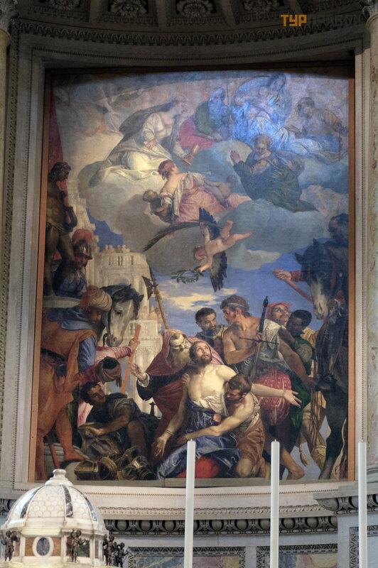 Nastę pują ce dzieł a sztuki zdobią koś ció ł : Mę czeń stwo ś w. Jerzego autorstwa Veronese w gł ó wnym oł tarzu. . .