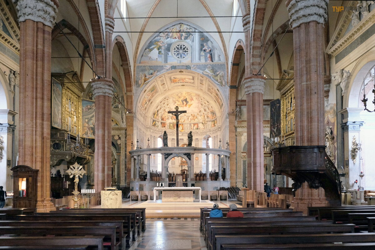 Nawę gł ó wną katedry uzupeł nia prezbiterium zbudowane w XVI wieku przez architekta Michele Sanmicheli. Balustrada chó ru wykonana jest w formie pó ł kolistego parapetu z kolumnami joń skimi.