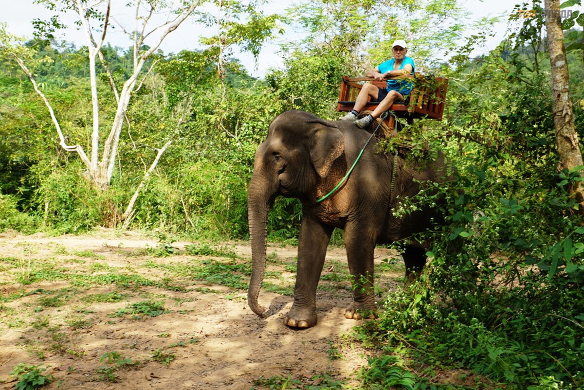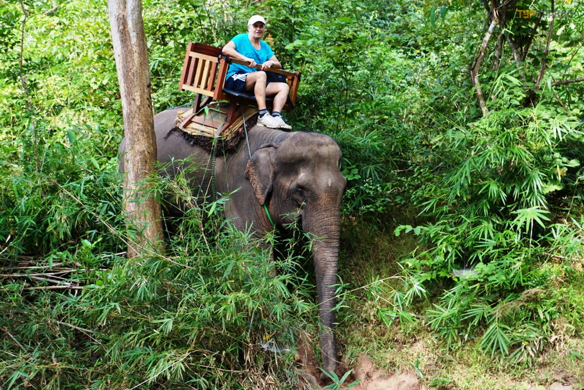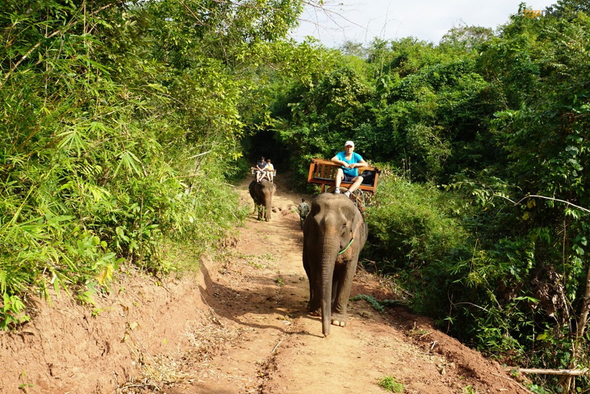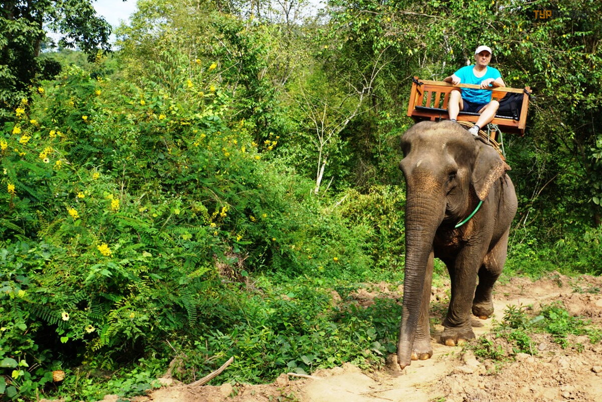 Jechaliś my przez okoł o godzinę okropną drogą . Nad brzegiem rzeki Mekong znajduje się kawiarnia, a wraz z nią sł onie, któ re toczą turystó w. To miejsce jest bardzo pię kne. Wś ró d drzew widział em sł onie przywią zane ł ań cuchem u nogi do drzewa. Jest to dla nich ś wię to. Po Tajlandii obiecał em sobie, ż e już nie usią dę na sł oniu, po tym jak zobaczył em niegrzeczne nastawienie kornakó w do sł oni, któ rzy bili sł onie po gł owie hakami, dopó ki nie wykrwawił y się . Co wię cej, trzeba tu dodać , ż e prawie wywró cił się wraz ze sł oniem do wą wozu, gdzie sł oń się gną ł trą bą po soczystą trawę . Czas miną ł , wszystko został o zapomniane. Ponadto zbadał em mojego sł onia i woź nicę , któ ry miał tylko cienki prę t. Widać był o, ż e sł oń był dobrze traktowany, tylko jego oczy był y smutne. Ciekawe, czy kiedykolwiek chciał uciec do dż ungli do swoich wolnych braci? Niestety nigdy nie powie. Przez prawie dwie godziny tarzał mnie przez rowy, kamienie i lasy.