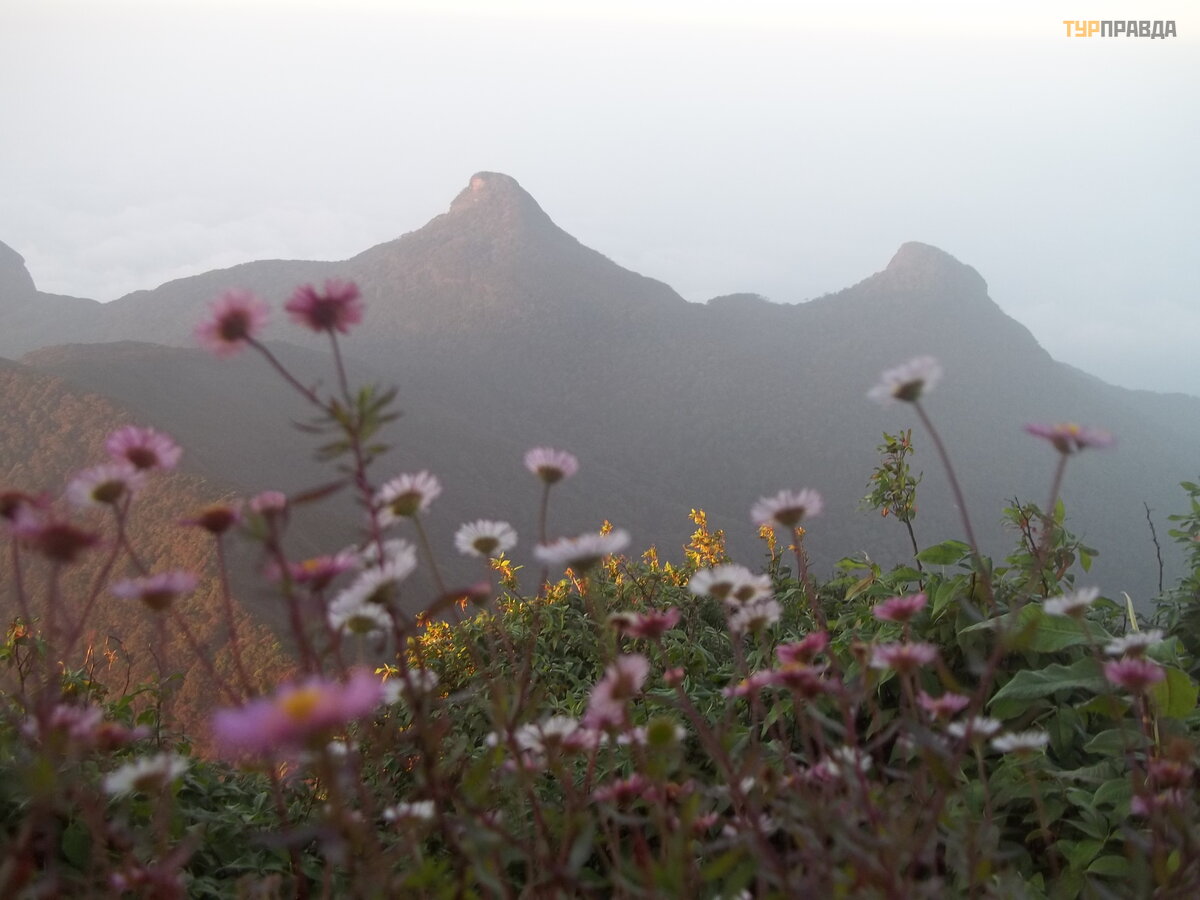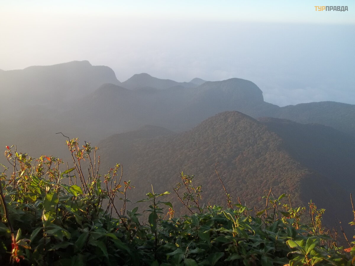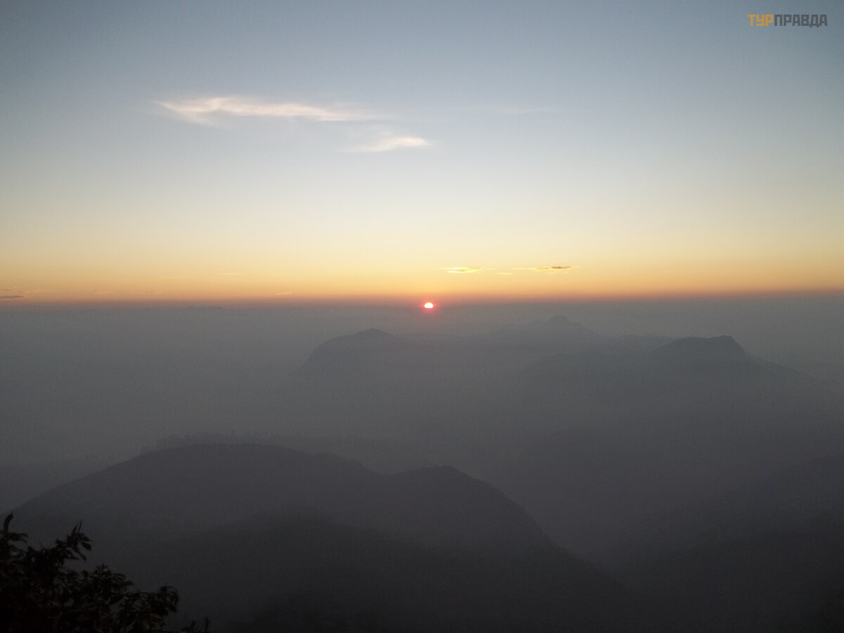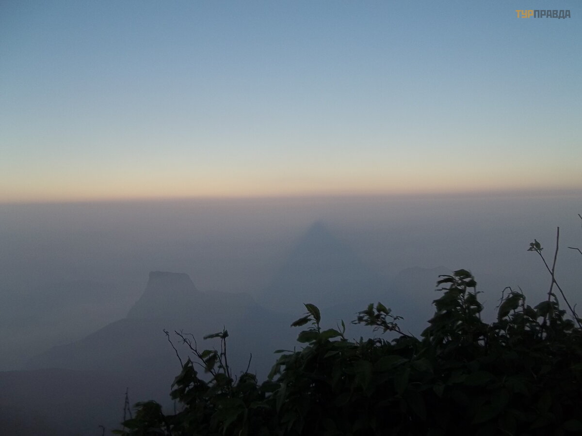 Но из разговоров поняла, что это не гора, а тень горы! Тень Пика Адама, на котором мы находимся. Такого чуда я еще не видела! Только ради этого стоило идти!