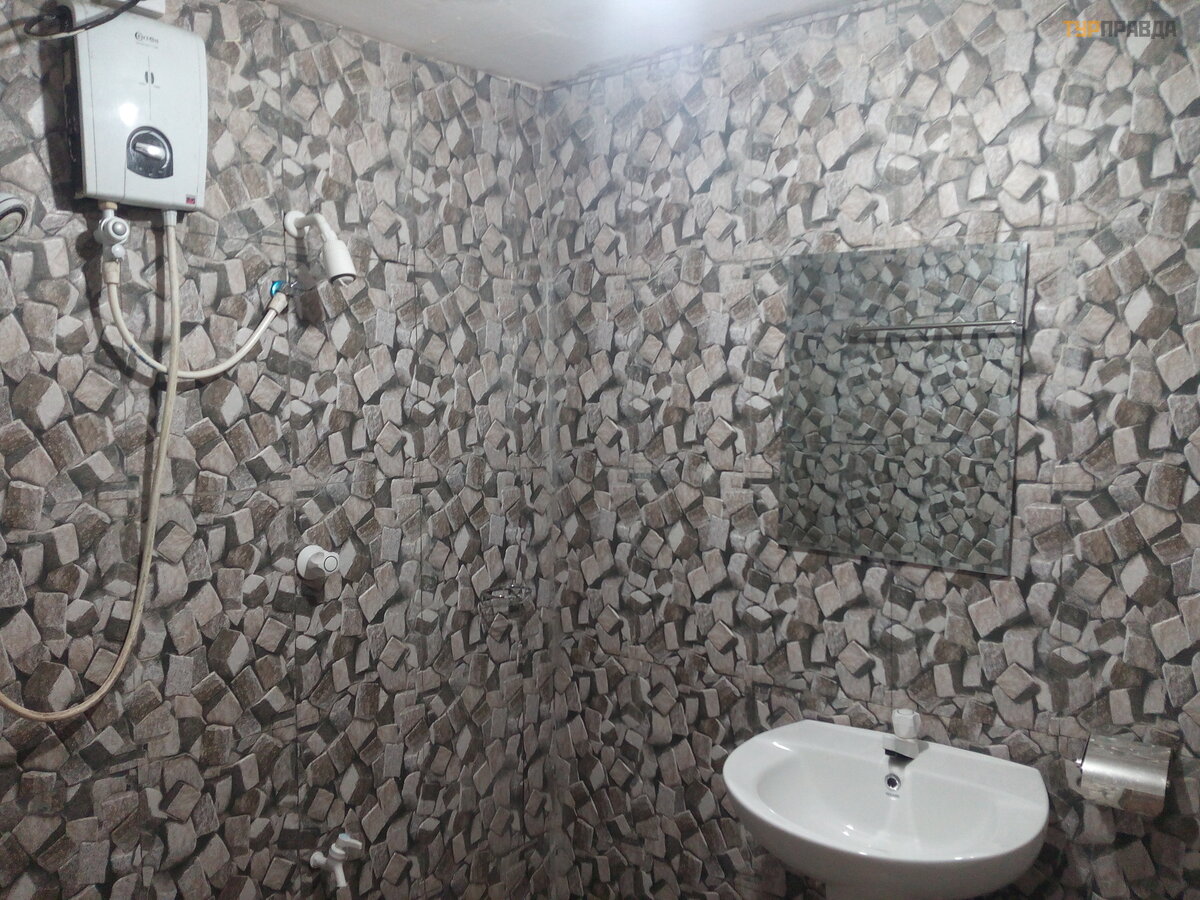 В санузле дорогущая плитка на стенах и, о чудо! Водонагреватель.