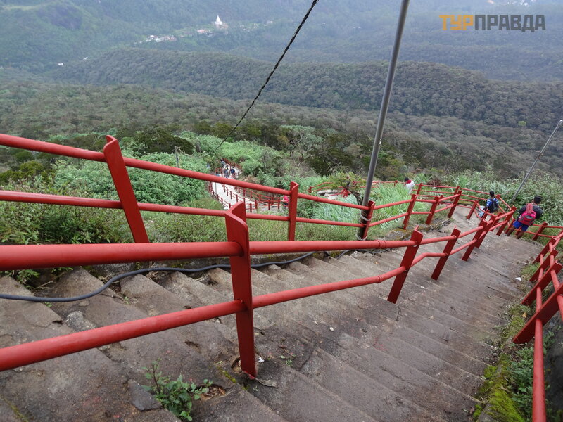 Kiedy tam byliś my, wspinanie się na Sri Pada zależ ał o tylko od naszej wł asnej wytrzymał oś ci i moż liwoś ci. Ale po 2-3 tygodniach rozpoczą ł się okres pielgrzymkowy. A potem wspinanie się na gó rę mogł oby trwać znacznie dł uż ej – bo na każ dym stopniu czeka na swoją kolej na wejś cie na gó rę i pokł on przed swoją ś wią tynią , niezależ nie od tego, czy jest buddystą (odcisk stopy Buddy), czy hinduistą (odcisk stopy Wisznu) lub muzuł maninem lub chrześ cijaninem (ś lad Adama). Wychodzą na gó rę okoł o drugiej w nocy, wstają cał ą noc z latarkami i spotykają ś wit. Sił y wyż sze nie pokazał y nam ś witu, ale zdję cia został y zrobione.