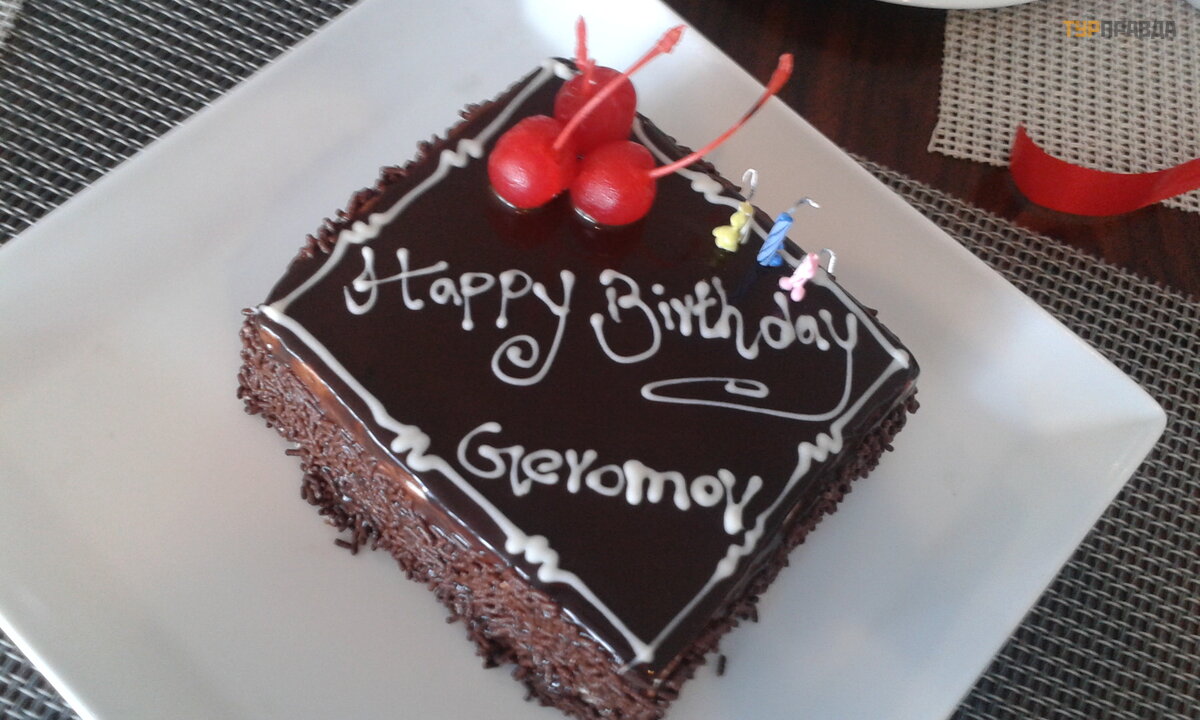 Duż o wypiekó w. Nie zdą ż yliś my nawet spró bować wszystkiego. Bardzo ucieszył y mnie gratulacje od personelu mojego mę ż a z okazji jego urodzin. Przygotowali dla niego pyszne ciasto ze ś wieczkami, któ re zdmuchną ł .