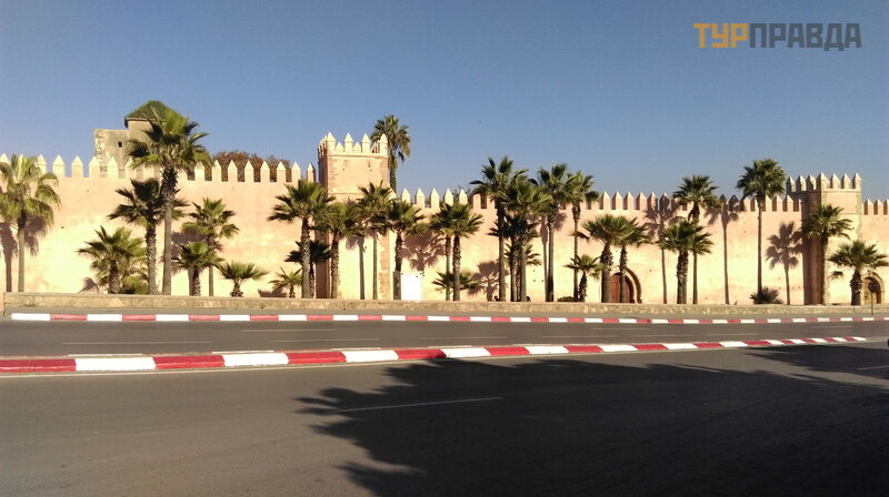 Pogoda w Rabacie był a pię kna i był o jak lato (mimo ż e mieliś my na sobie kurtki), wię c postanowiliś my ruszyć w stronę nasypu. W drodze do niego mieliś my drogę wzdł uż fortecy, otoczoną palmami.