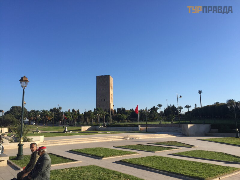 Na dalszym planie był a wież a Hassana, a ś cież ka do niej prowadził a przez mini park, w któ rym sporo starszych ludzi wygrzewał o się na sł oń cu.