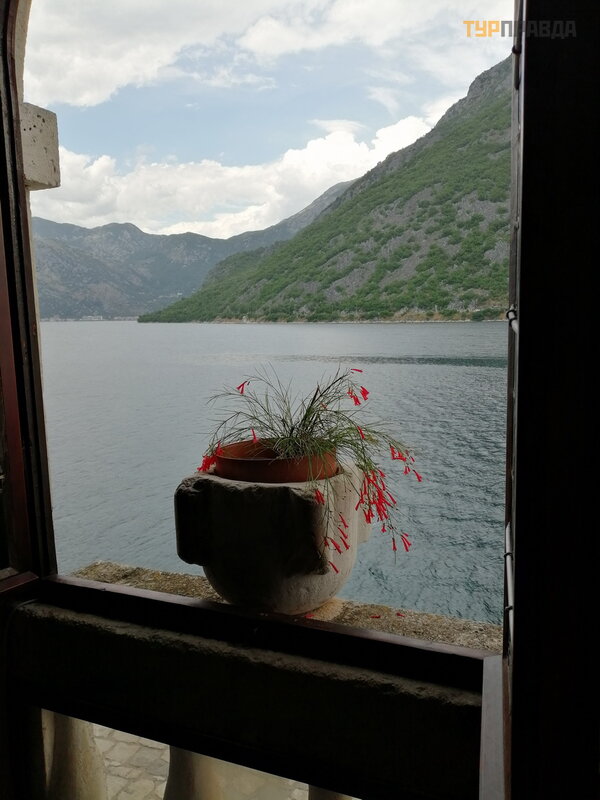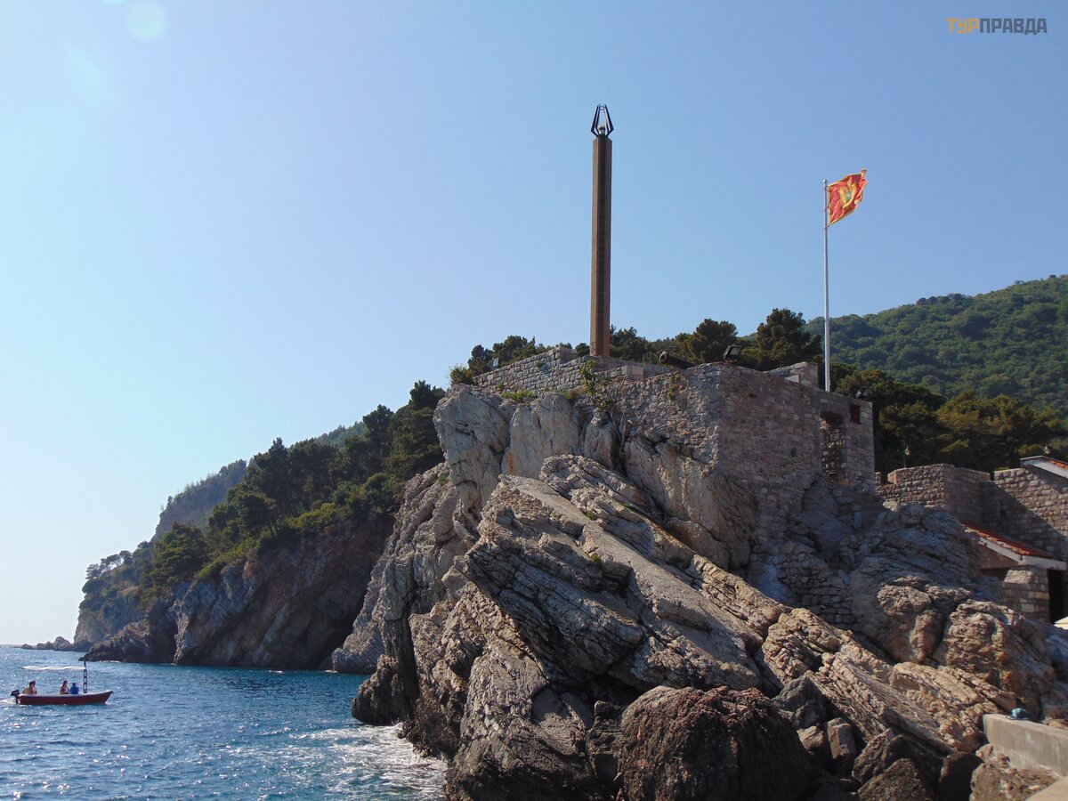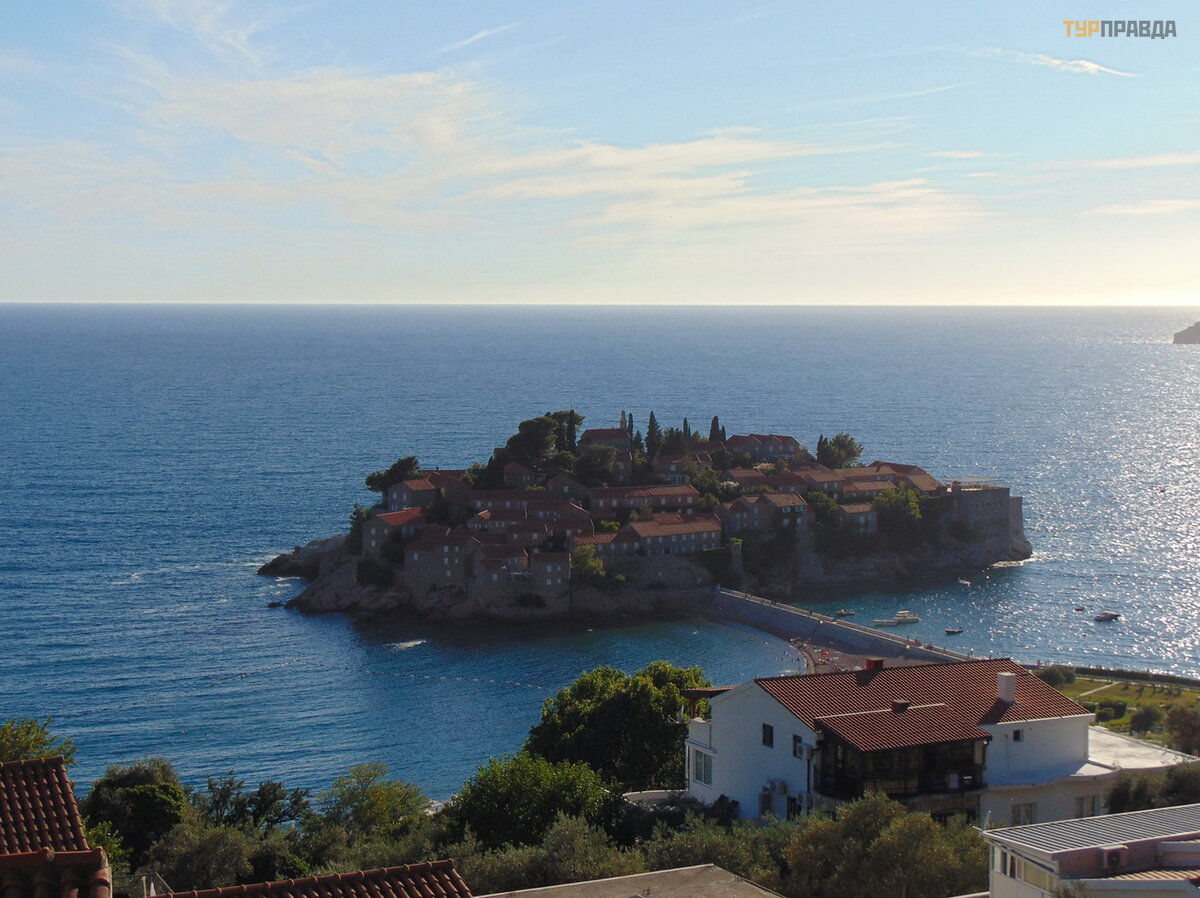 Z gó ry doskonale widoczne zatoki i plaż e czarnogó rskich kurortó w, „wizytó wka” wyspy Sveti Stefan i oczywiś cie lazurowe, magiczne, zapraszają ce Morze Adriatyckie.