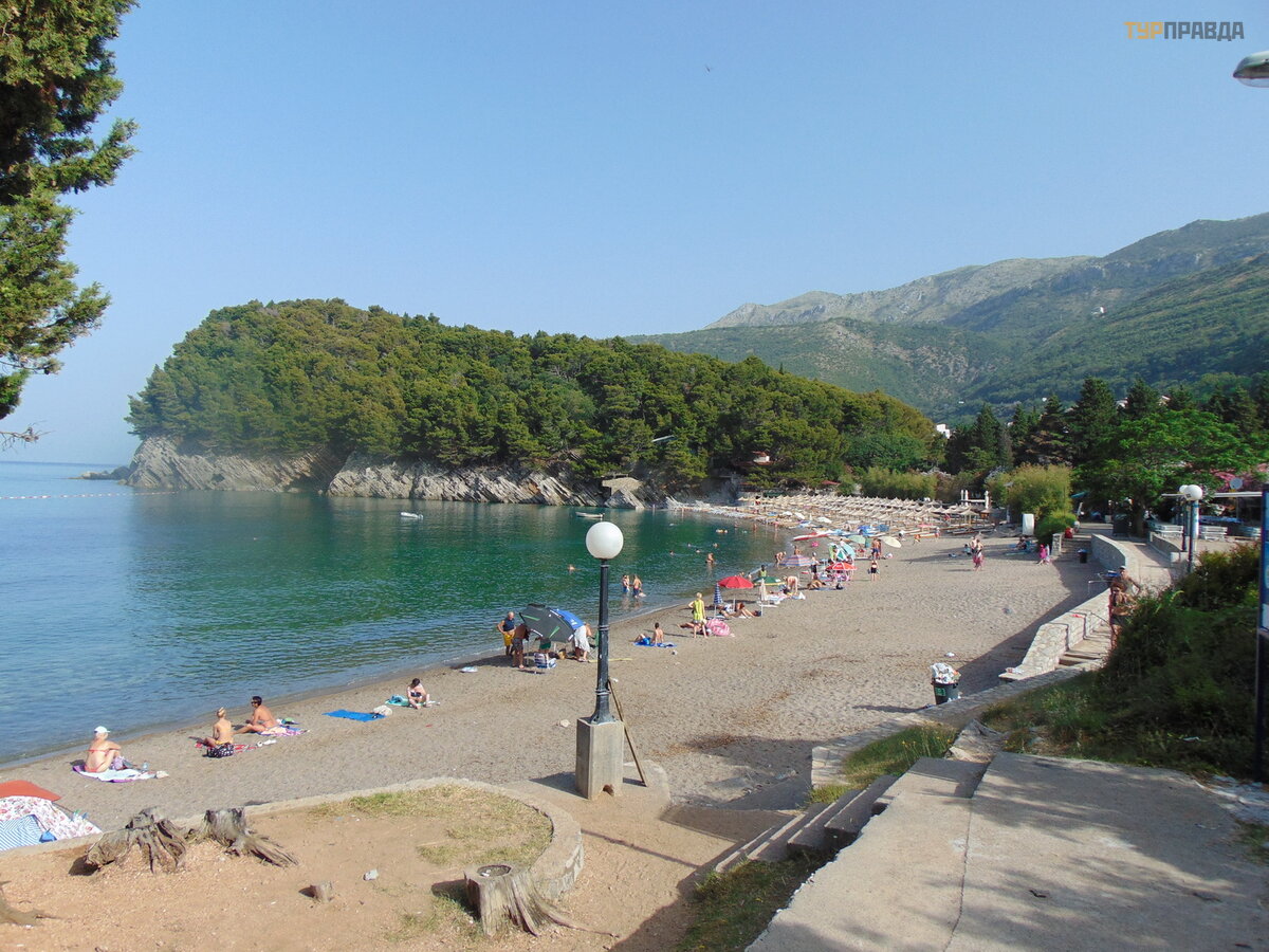 Woda w morzu jest nierealna, otoczona mał ymi zielonymi pelerynami, jest tam cał a infrastruktura niezbę dna dla turysty (prysznice, toalety, przebieralnie, kawiarnie). Oczywiś cie, jak wszę dzie w Czarnogó rze, wię kszoś ć zajmował y też pł atne leż aki, ale i tak zawsze był o miejsce.