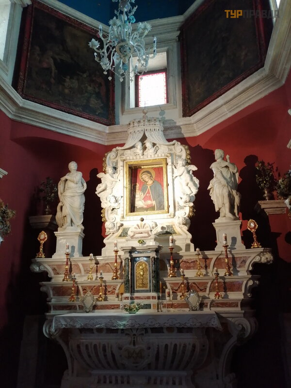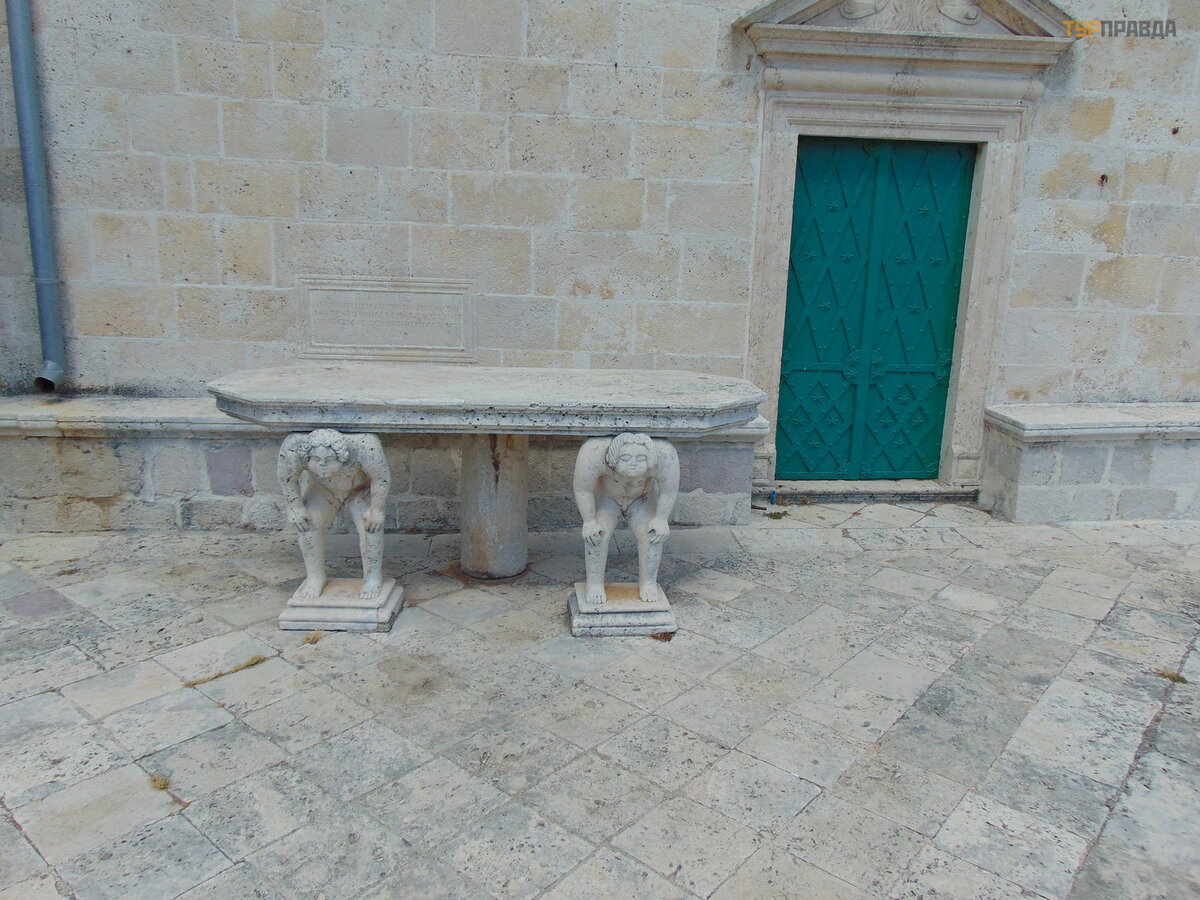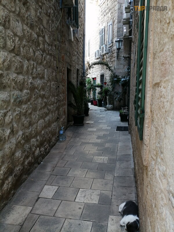 Jest tu też pewna historia: mó wią , ż e kiedyś kupcy przywieź li relikwie ś w. Tryfona do Wenecji, aby je sprzedać . Straszna burza zmusił a ich do ukrycia się w przytulnej Zatoce Kotorskiej. Burza trwał a kilka dni, dopó ki miejscowi nie zorientowali się , ż e ś w. Tryfon chce zostać w mieś cie. W nocy zebrali niezbę dną kwotę , kupili relikwie i zbudowali dla nich taką katedrę . Wejś cie do niego jest pł atne - 3 euro.