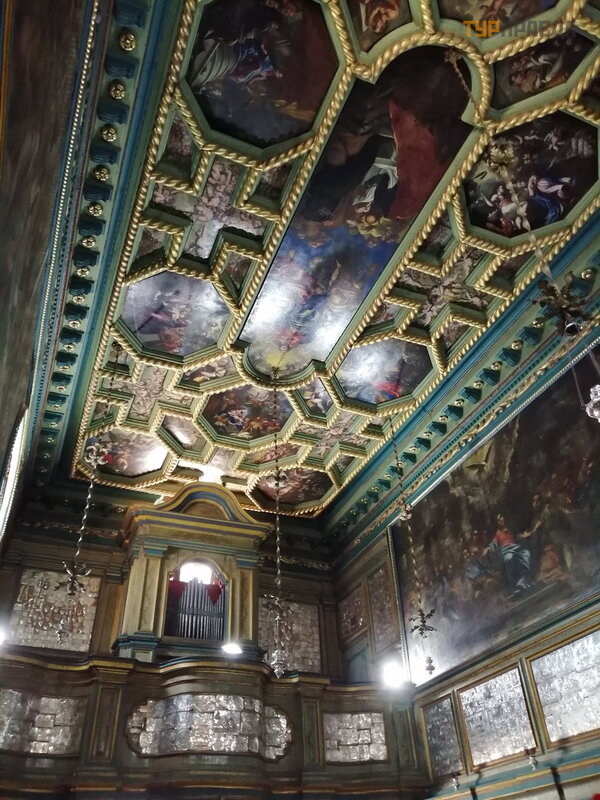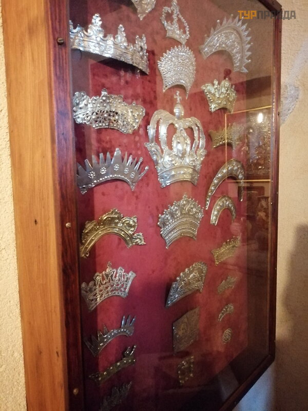 Bukiety ś lubne wiszą w bocznych nawach. Wesela w tym koś ciele wcią ż cieszą się duż ą popularnoś cią , a panny mł ode zostawiają tu swoje bukiety.