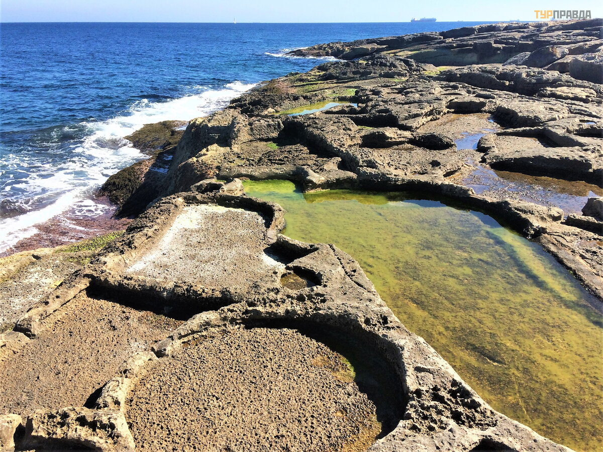 На Мальте издревле добывается морская соль. Особого пика промысел достиг в XIX веке. Дело нехитрое, но трудоемкое. Выдалбливались углубления на скалистых морских берегах, воду туда либо ведрами заливали, ну, или шторм когда помогал. Вода испарялась, соль оставалась, ее и соскребали. Это рассказывать легко, а на деле, конечно же, есть куча нюансов: сезон, направление и скорость ветра и т. д.