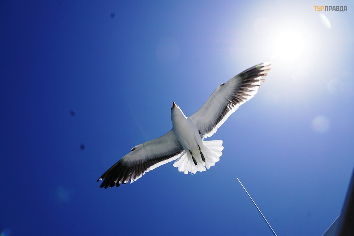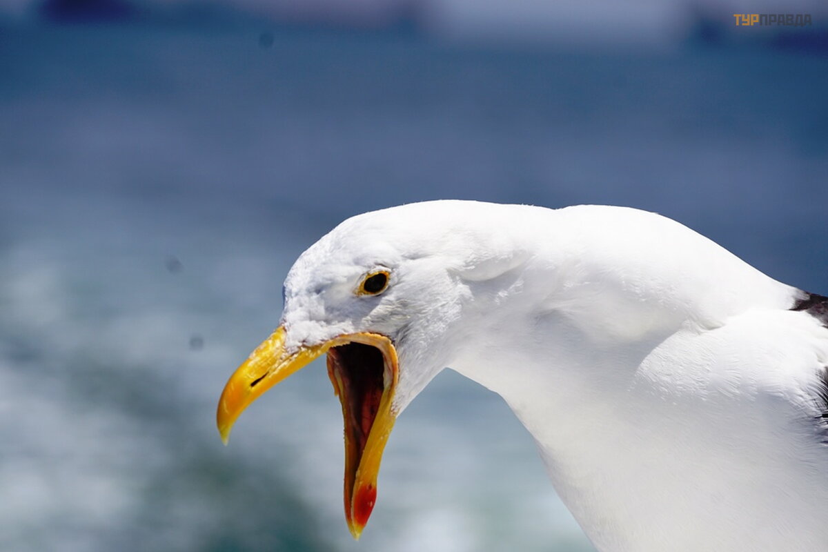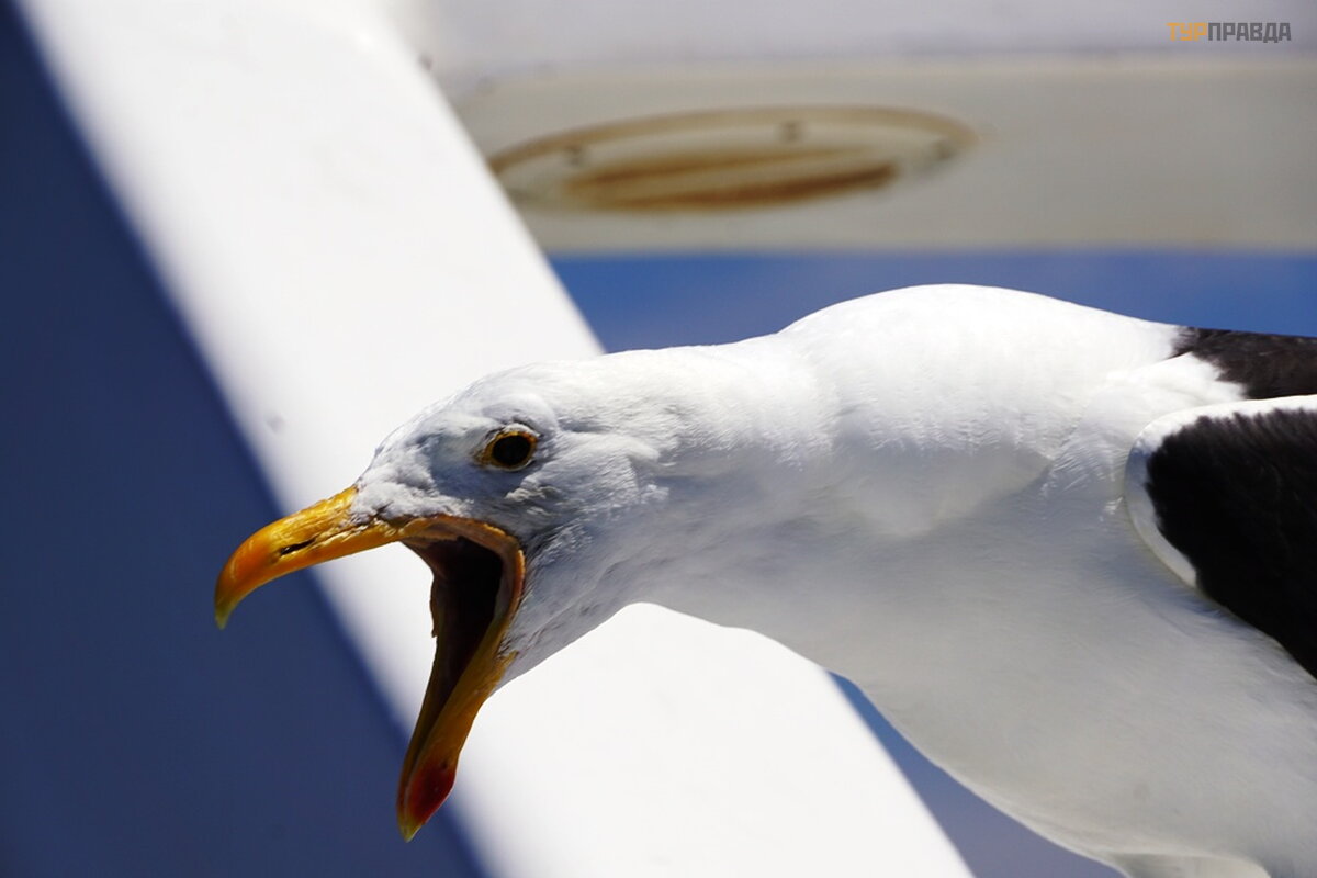 Udał o mi się zrobić zdję cie, gdy mewa porwał a mi kawał ek przeką ski, jednocześ nie szczypią c mnie w palce. Zraniony.