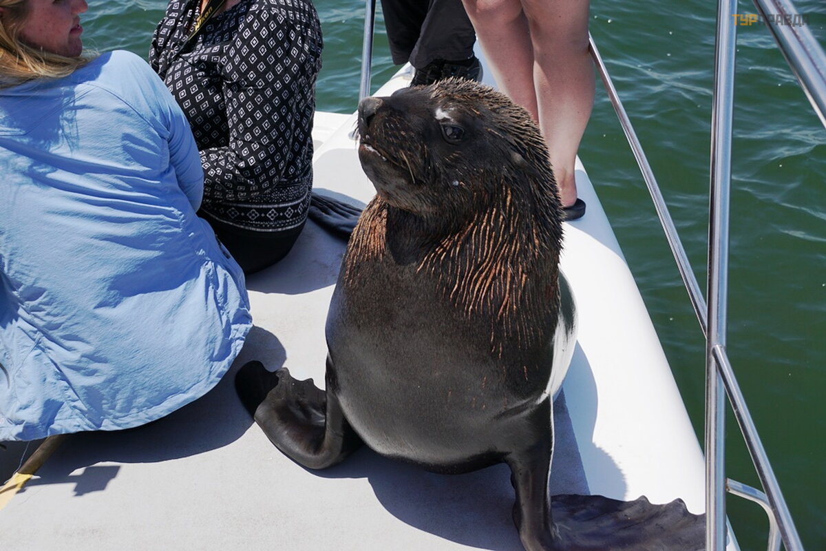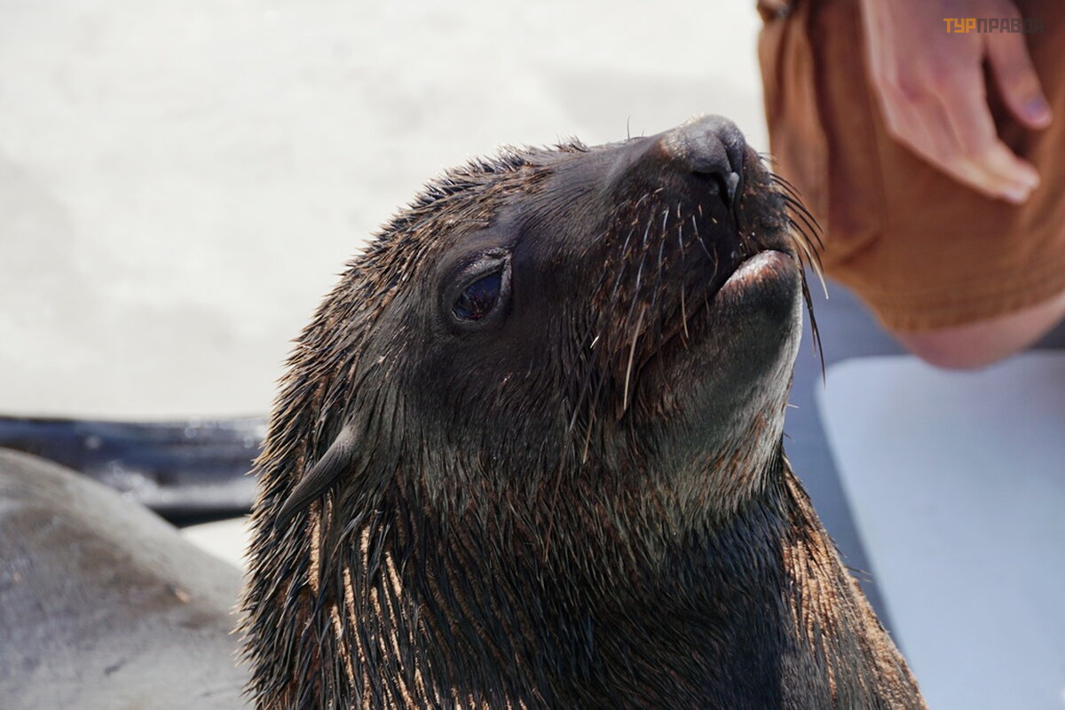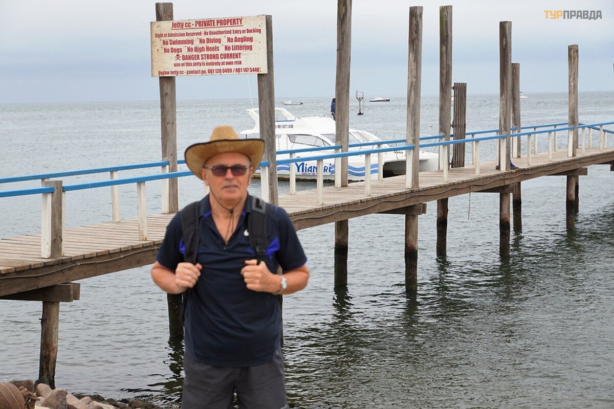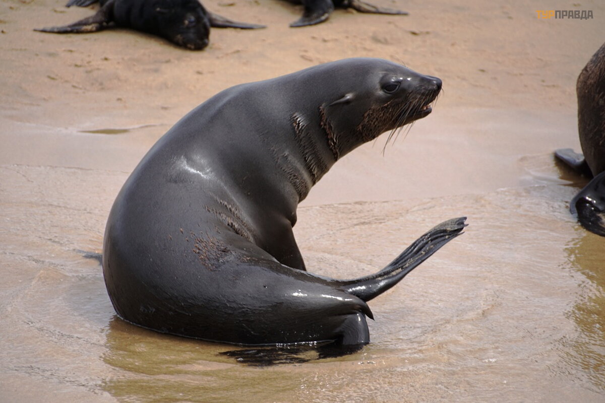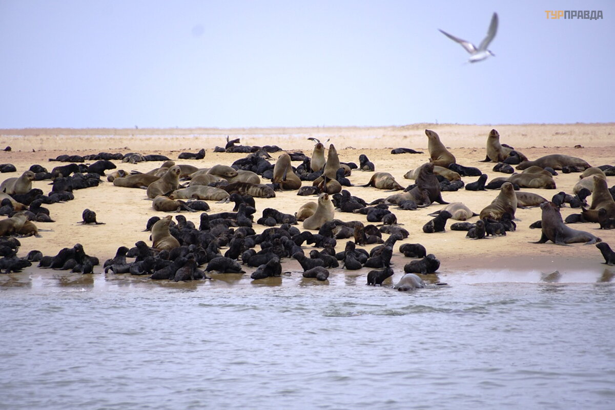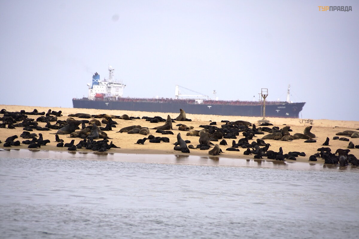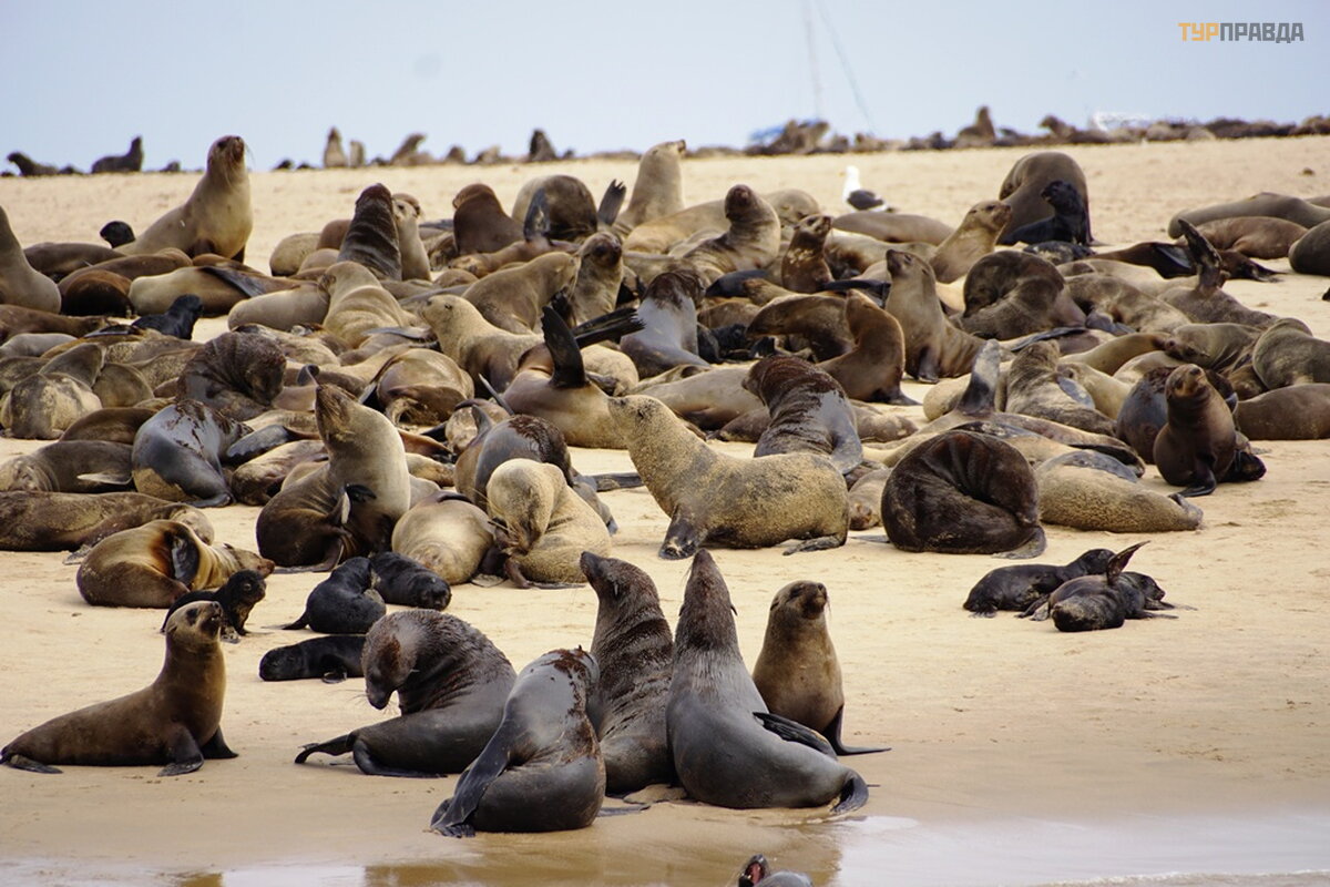 Po przyjeź dzie do Swakopmund od razu zarezerwował em kilka wycieczek, a raczej jedną ł ą czoną za 2000 NAD (9243 ruble), morze i wzdł uż pustynnych wydm jeepem. Bardzo drogie, ale bez nich nie jest ciekawie. Po wspaniał ym ś niadaniu zadzwonił do mnie autobus z już siedzą cymi biał ymi i bardzo opalonymi turystami. Wsiadł em do autobusu i jak zwykle przywitał em się i podał em swoje imię . Wtedy powiedział em im, ż e jestem z Rosji, nasz prezydent Putin. Masz do mnie pytania? Mó wią , ż e nagle na chwilę się uspokoili. co to był o teraz? Potem wszyscy zgodnie powiedzieli i skinę li gł owami, ż e nie ma do mnie ż adnych pytań . Usiadł em na najlepszym miejscu obok kierowcy i wyją ł em aparat, ż eby robić zdję cia podczas jazdy. Przez cał ą drogę w autobusie panował a cisza. Pojechaliś my 45 minut na poł udnie od Namibii do innego kurortu (Walvis Bay) Walvis Bay, Parku Narodowego Namib-Naukluft. Zatrzymaliś my się na parkingu ł odzi, gdzie musieliś my czekać na naszą ł ó dź , któ ra czekał a na swoją kolej na parking. Z brzegu widać był o, jak foki i pelikany pró bował y dostać się na nastę pną ł ó dź , a marynarz odgonił je kijem. W koń cu zał adowano nas i odpł ynę liś my, a foki i pelikany rzucił y się za nami, czasem z wody wyskakiwał y delfiny. Po godzinie ż eglugi rzuciliś my kotwicę , a mewy, pelikany i foki natychmiast rzucił y się w naszą stronę . Nasz przewodnik opowiedział wiele ró ż nych rzeczy, a potem zaczą ł karmić mewy, któ re dziesią tkami napł ynę ł y do naszej ł odzi. Rozpoczą ł się pierwszy pokaz. Turyś ci zaczę li też karmić mewy. Karmił em mewy z rę ki, wię c tak mocno ugryzł y mnie w palce. Okazują się sprytni. Niektó rzy pró bowali tylko zł apać buł kę , podczas gdy inni wyrwali ją prosto z nosa swoim bliskim. Nastę pnie popł ynę liś my na pó ł wysep fok, gdzie od ich liczby zamiast ż ó ł tego piasku pojawił się cią gł y ciemny pas. Tu rozpoczą ł się drugi pokaz z udział em kota, któ remu przewodnik pozwolił wejś ć na naszą ł ó dź . Jaki on jest mą dry. Szybko wspią ł się po schodach i pobiegł na dzió b ł odzi, gdzie siedzieli turyś ci. Pozwalał wszystkim się gł askać i robić z nim zdję cia. Miał em szczę ś cie robić z nim zdję cia, chociaż nieś wiadomi turyś ci zablokowali mojego fotografa, któ ry okazał się zbyt nieś miał y, by na minutę rozproszyć tł um lub zdją ć tył ek z siedzenia na ł odzi. Po otrzymaniu porcji ryb kot wskoczył do oceanu i zjedliś my obiad. Jeden marynarz otworzył muszle oceanu mię sem, inny rozł oż ył jedzenie, a trzeci nalał szampana. Wszyscy jedli duż o, a jedzenia był o duż o, na przykł ad szampana. Turyś ci byli trochę powolni. Pili po cichu bez tostó w. Proponował em pić turystom ze wszystkich krajó w, a oni pili po cichu. Musiał em wypić butelkę szampana, a przewodnik nadal oferował , ale nie mogł em już pić , ponieważ przejadał em się ró ż nymi brutalami. Kierowca ł odzi też bez przerwy pił .