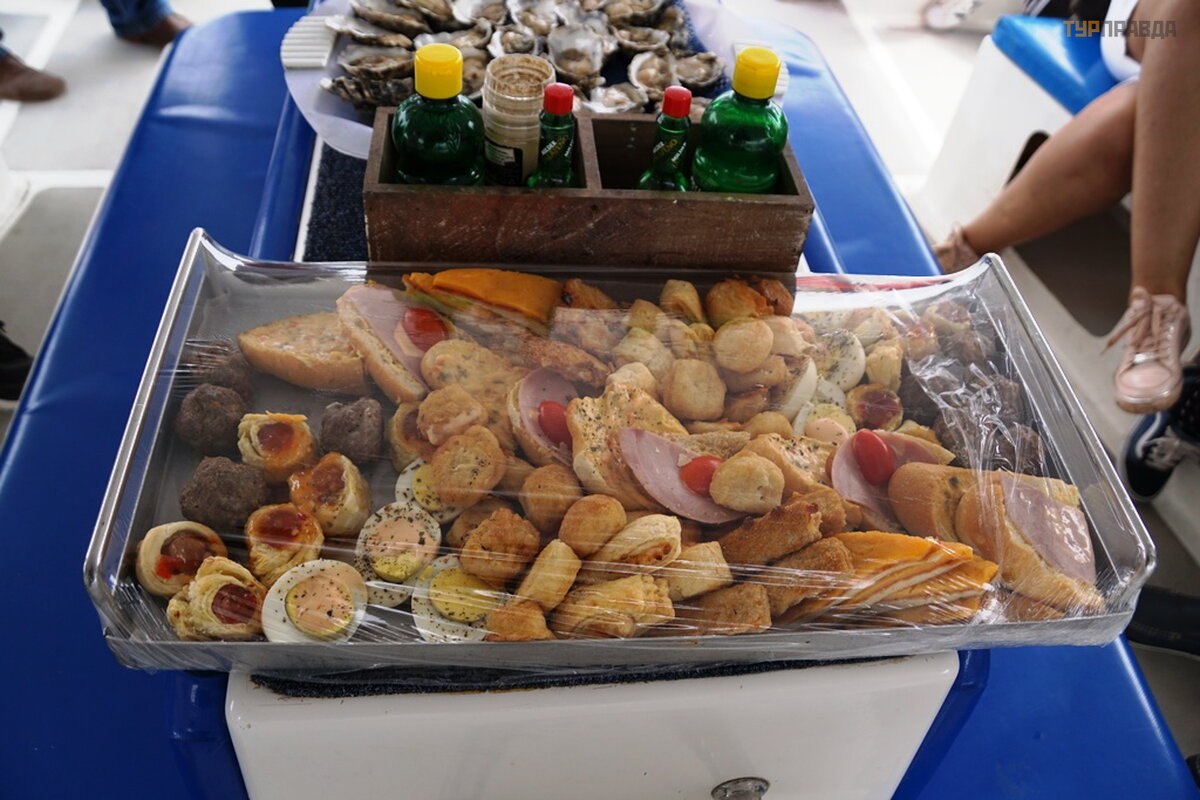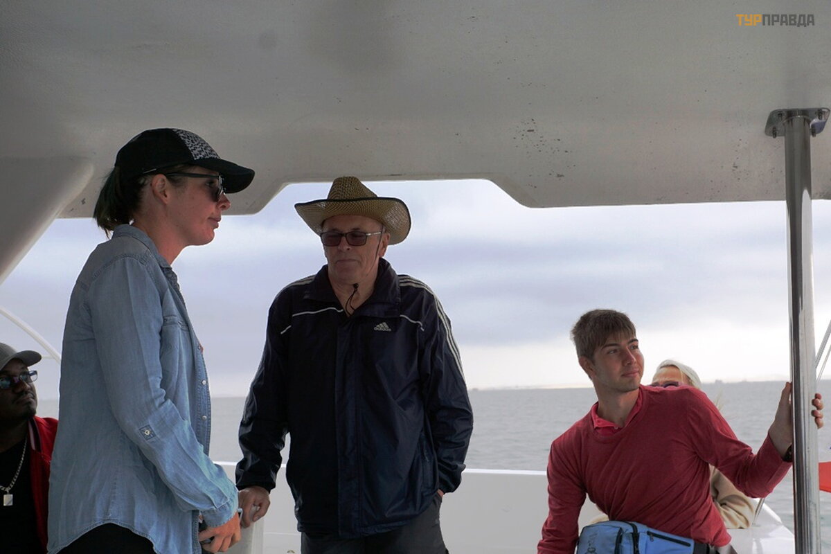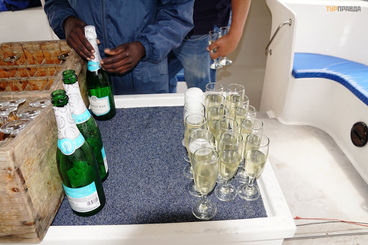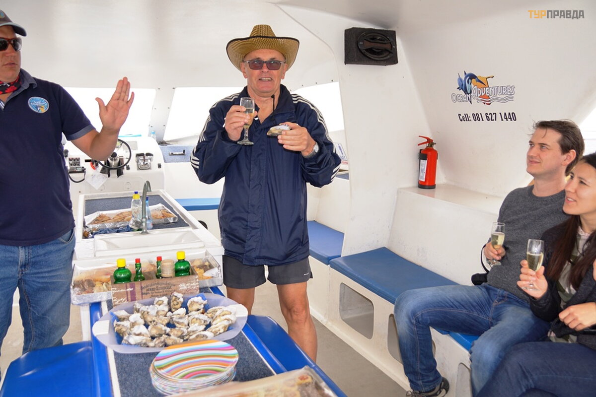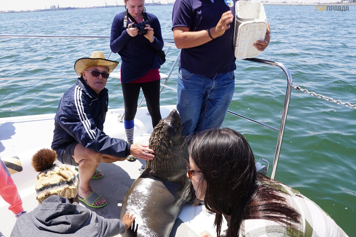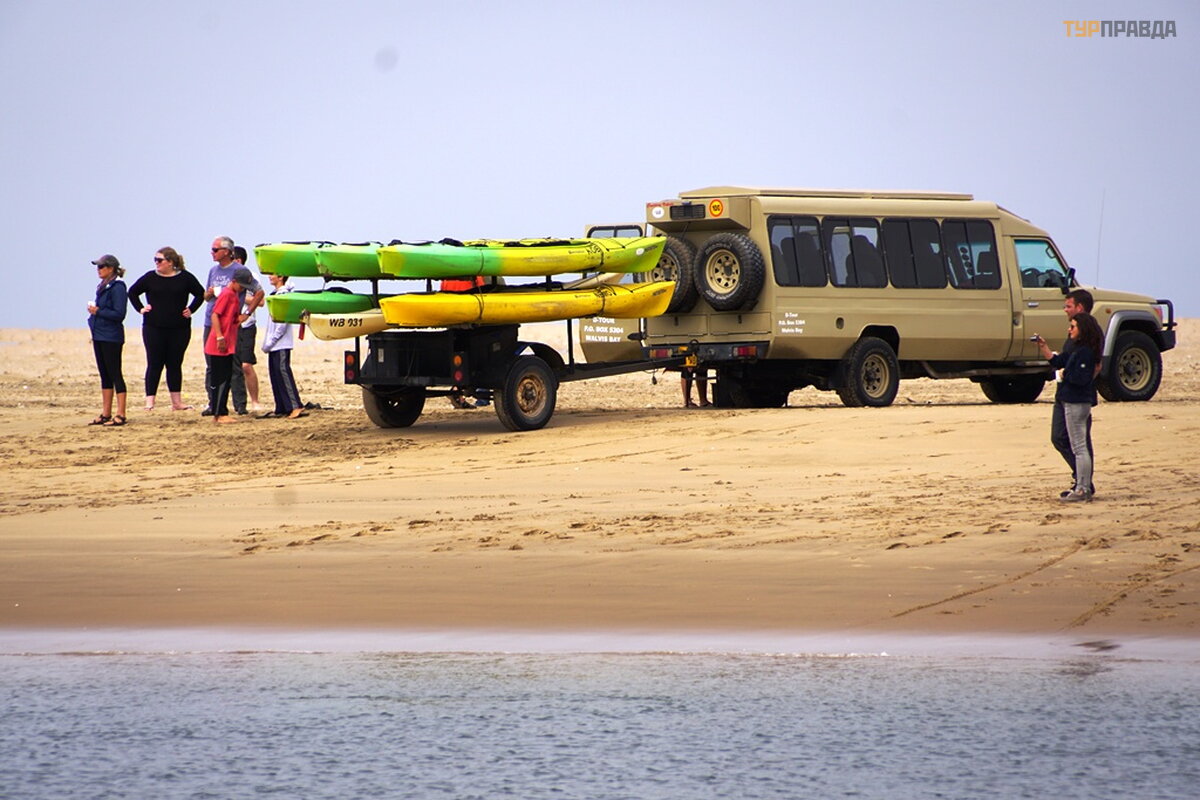 Po przyjeź dzie do Swakopmund od razu zarezerwował em kilka wycieczek, a raczej jedną ł ą czoną za 2000 NAD (9243 ruble), morze i wzdł uż pustynnych wydm jeepem. Bardzo drogie, ale bez nich nie jest ciekawie. Po wspaniał ym ś niadaniu zadzwonił do mnie autobus z już siedzą cymi biał ymi i bardzo opalonymi turystami. Wsiadł em do autobusu i jak zwykle przywitał em się i podał em swoje imię . Wtedy powiedział em im, ż e jestem z Rosji, nasz prezydent Putin. Masz do mnie pytania? Mó wią , ż e nagle na chwilę się uspokoili. co to był o teraz? Potem wszyscy zgodnie powiedzieli i skinę li gł owami, ż e nie ma do mnie ż adnych pytań . Usiadł em na najlepszym miejscu obok kierowcy i wyją ł em aparat, ż eby robić zdję cia podczas jazdy. Przez cał ą drogę w autobusie panował a cisza. Pojechaliś my 45 minut na poł udnie od Namibii do innego kurortu (Walvis Bay) Walvis Bay, Parku Narodowego Namib-Naukluft. Zatrzymaliś my się na parkingu ł odzi, gdzie musieliś my czekać na naszą ł ó dź , któ ra czekał a na swoją kolej na parking. Z brzegu widać był o, jak foki i pelikany pró bował y dostać się na nastę pną ł ó dź , a marynarz odgonił je kijem. W koń cu zał adowano nas i odpł ynę liś my, a foki i pelikany rzucił y się za nami, czasem z wody wyskakiwał y delfiny. Po godzinie ż eglugi rzuciliś my kotwicę , a mewy, pelikany i foki natychmiast rzucił y się w naszą stronę . Nasz przewodnik opowiedział wiele ró ż nych rzeczy, a potem zaczą ł karmić mewy, któ re dziesią tkami napł ynę ł y do naszej ł odzi. Rozpoczą ł się pierwszy pokaz. Turyś ci zaczę li też karmić mewy. Karmił em mewy z rę ki, wię c tak mocno ugryzł y mnie w palce. Okazują się sprytni. Niektó rzy pró bowali tylko zł apać buł kę , podczas gdy inni wyrwali ją prosto z nosa swoim bliskim. Nastę pnie popł ynę liś my na pó ł wysep fok, gdzie od ich liczby zamiast ż ó ł tego piasku pojawił się cią gł y ciemny pas. Tu rozpoczą ł się drugi pokaz z udział em kota, któ remu przewodnik pozwolił wejś ć na naszą ł ó dź . Jaki on jest mą dry. Szybko wspią ł się po schodach i pobiegł na dzió b ł odzi, gdzie siedzieli turyś ci. Pozwalał wszystkim się gł askać i robić z nim zdję cia. Miał em szczę ś cie robić z nim zdję cia, chociaż nieś wiadomi turyś ci zablokowali mojego fotografa, któ ry okazał się zbyt nieś miał y, by na minutę rozproszyć tł um lub zdją ć tył ek z siedzenia na ł odzi. Po otrzymaniu porcji ryb kot wskoczył do oceanu i zjedliś my obiad. Jeden marynarz otworzył muszle oceanu mię sem, inny rozł oż ył jedzenie, a trzeci nalał szampana. Wszyscy jedli duż o, a jedzenia był o duż o, na przykł ad szampana. Turyś ci byli trochę powolni. Pili po cichu bez tostó w. Proponował em pić turystom ze wszystkich krajó w, a oni pili po cichu. Musiał em wypić butelkę szampana, a przewodnik nadal oferował , ale nie mogł em już pić , ponieważ przejadał em się ró ż nymi brutalami. Kierowca ł odzi też bez przerwy pił .