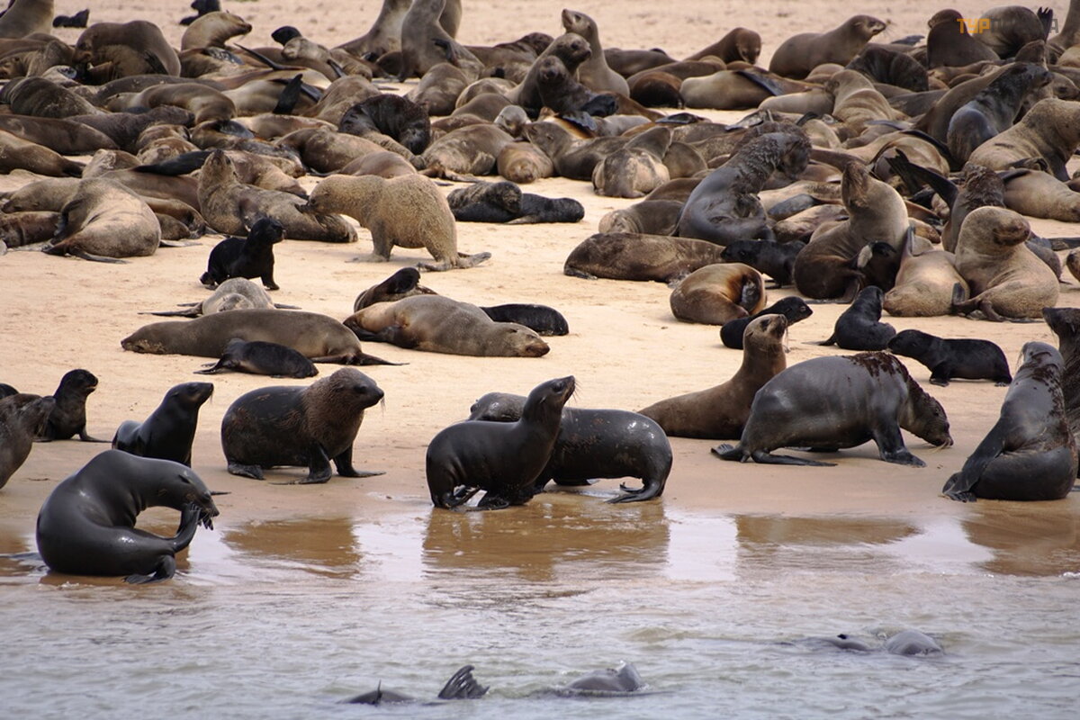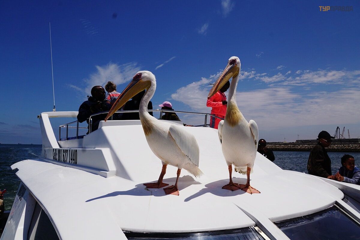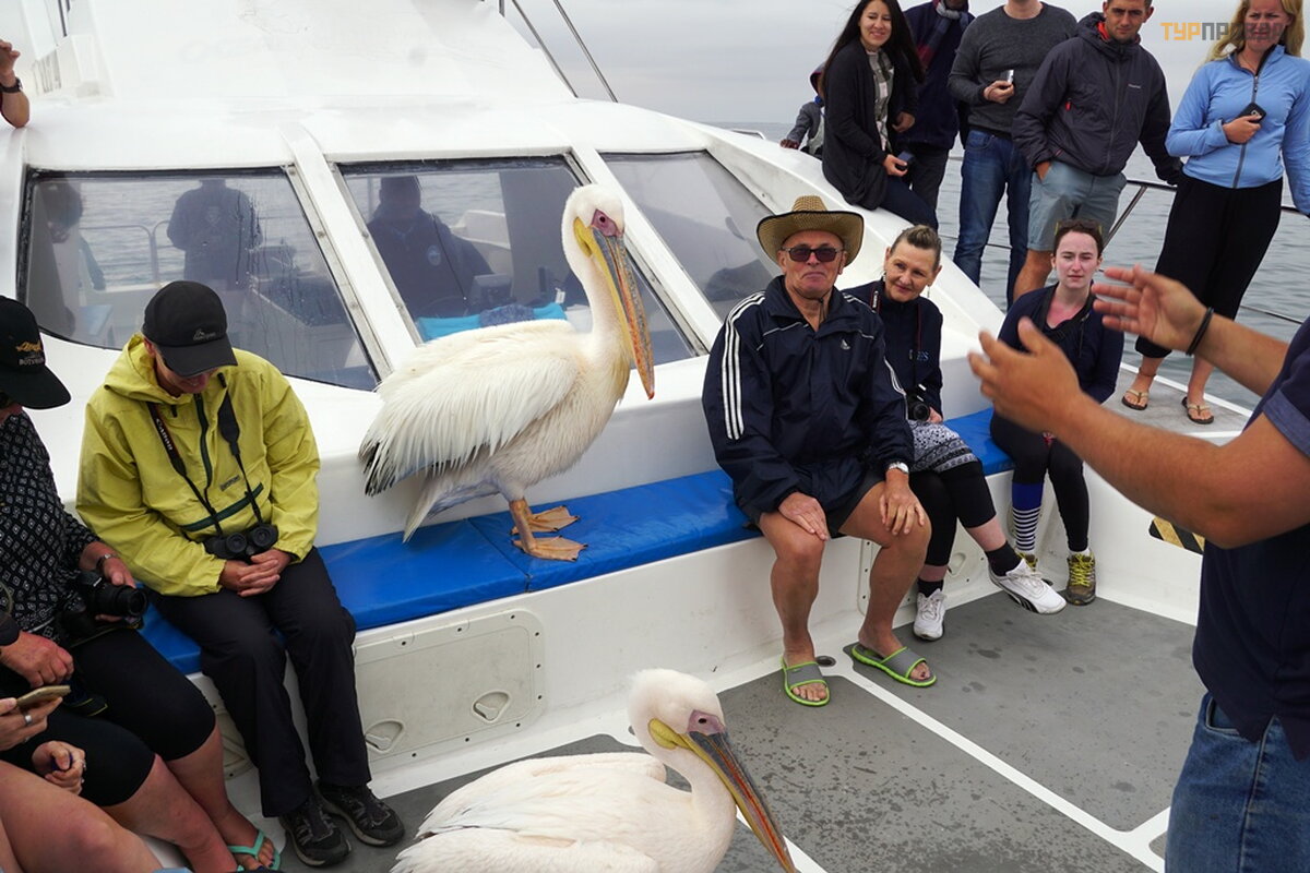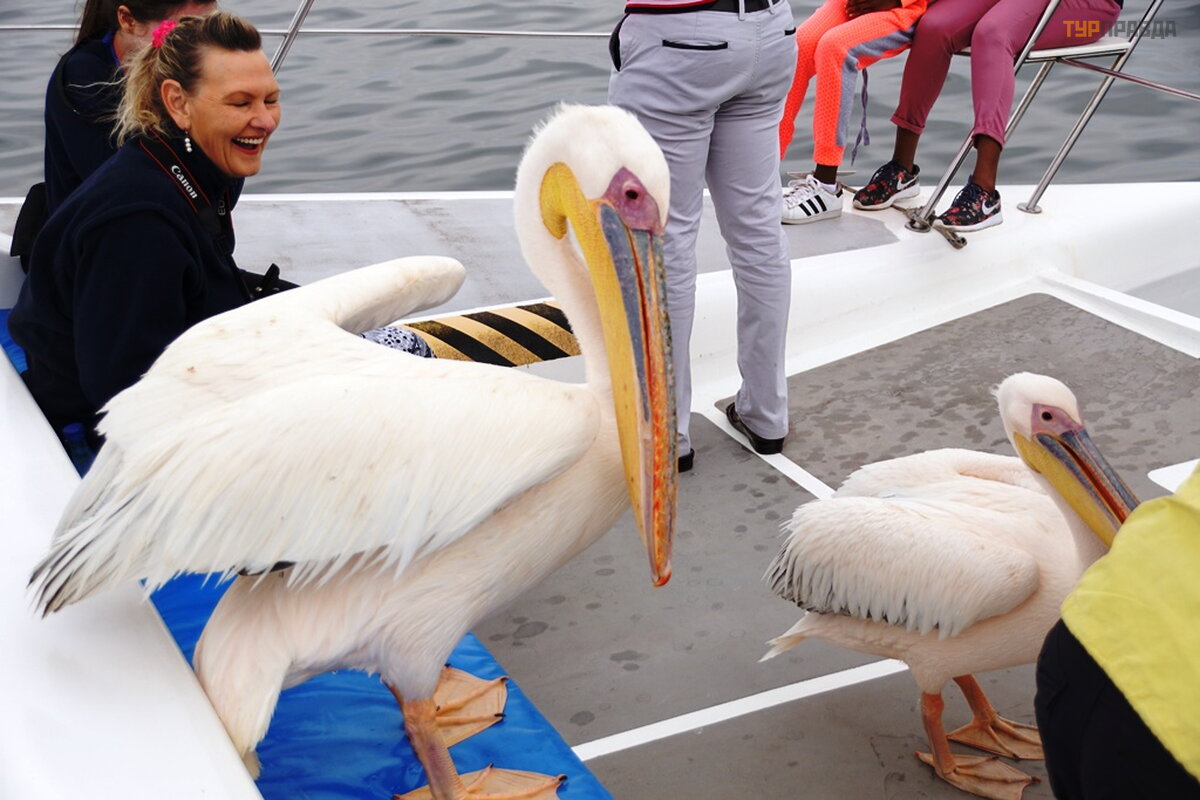 Po obiedzie podpł ynę liś my w pobliż u fokarium. Ciekawie był o ich oglą dać . Mał ych kotó w pilnował a jedna gł ó wna matka. Najważ niejszy tata, gruby i ogromny, czuwał nad porzą dkiem w swojej kolonii. Dwadzieś cia minut pó ź niej wypł ynę liś my i zatrzymaliś my się ponownie, gdzie natychmiast zebrał y się pelikany. Spektakl trwał dalej. Wszyscy turyś ci zaczę li robić sobie z nimi zdję cia. Pię tnaś cie minut pó ź niej przewodnik zaczą ł ich odpę dzać . Pelikany odmó wił y odlotu i zaż ą dał y kontynuacji bankietu, ale ryba już się dla nich skoń czył a. Zdają c sobie sprawę , ż e nic im nie zabł yś nie, pelikany niechę tnie odleciał y w poszukiwaniu kolejnej ł odzi z turystami. Pię ć godzin minę ł o niezauważ enie i wylą dowaliś my na brzegu miasta. Niektó rzy turyś ci poszli do hoteli, a ja przesiadł em się do jeepa i pojechaliś my na niekoń czą ce się wydmy Namibii jeszcze dalej na poł udnie kraju.