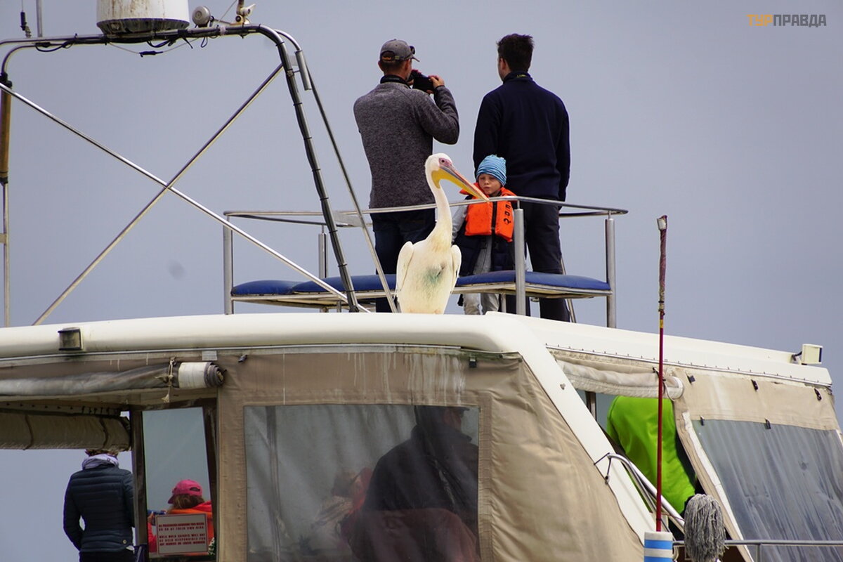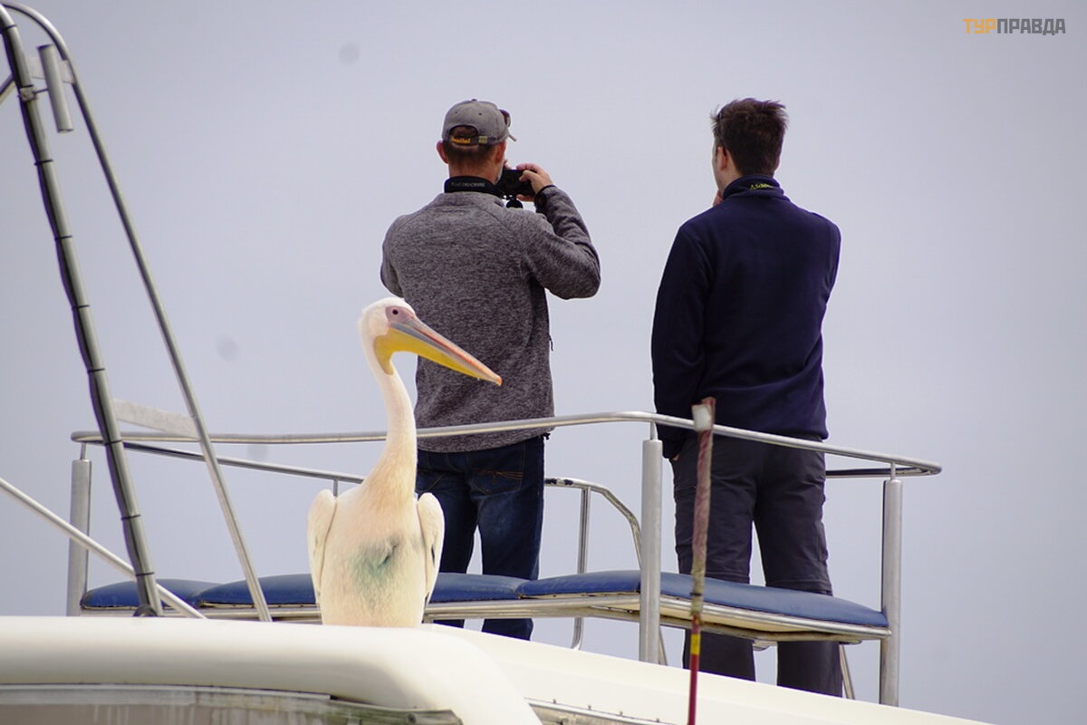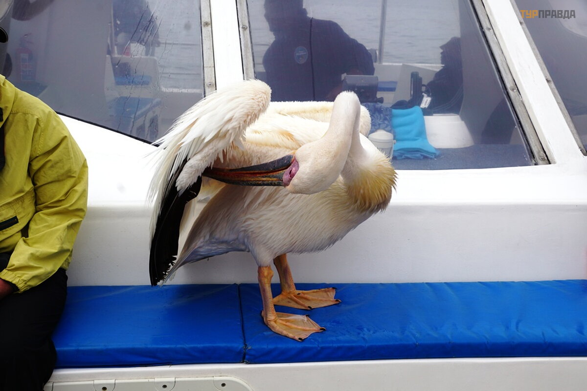 Pelikan pł ywał z nami. Wcale się nie boją ludzi.