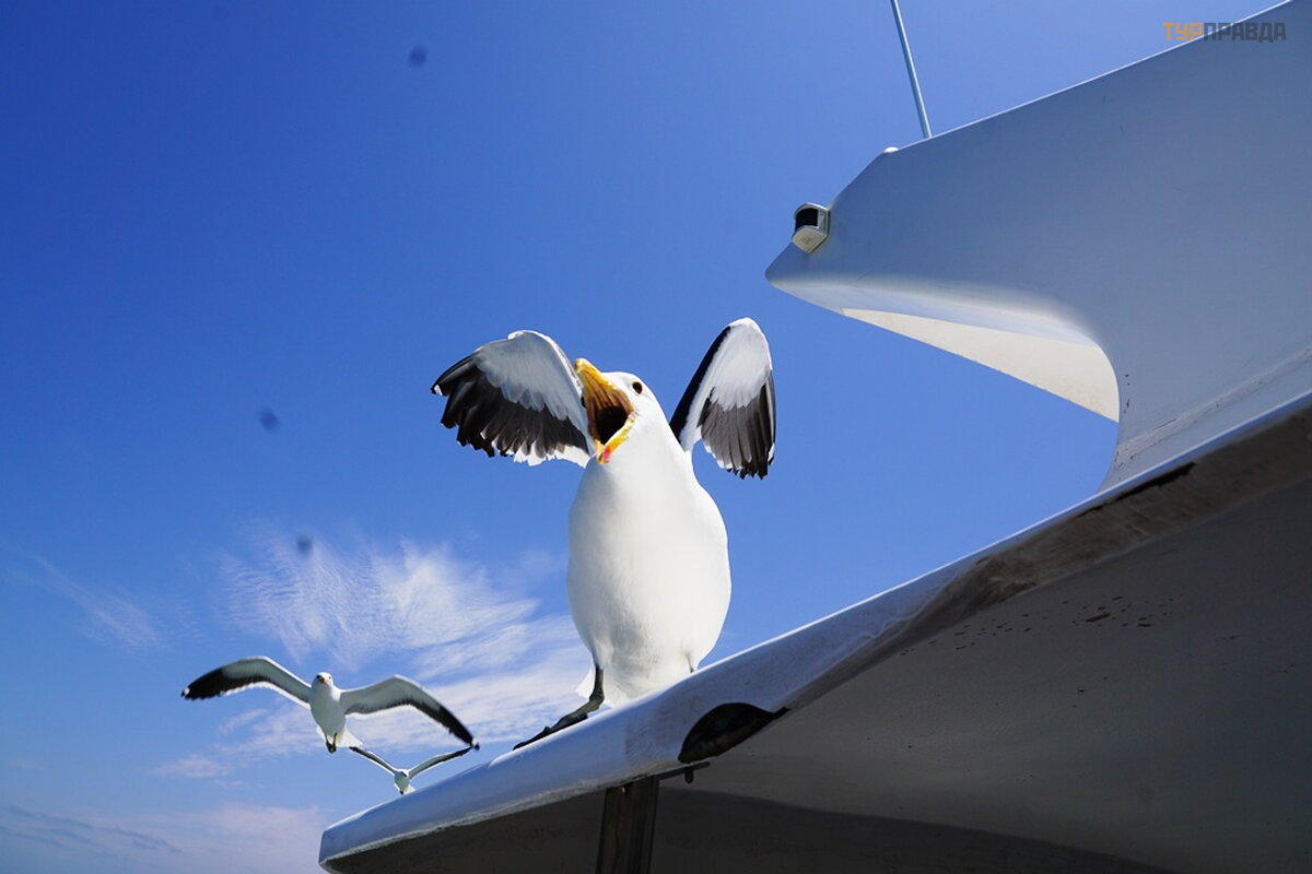 Fotki nie boją się turystó w i od razu wskakują na jacht.