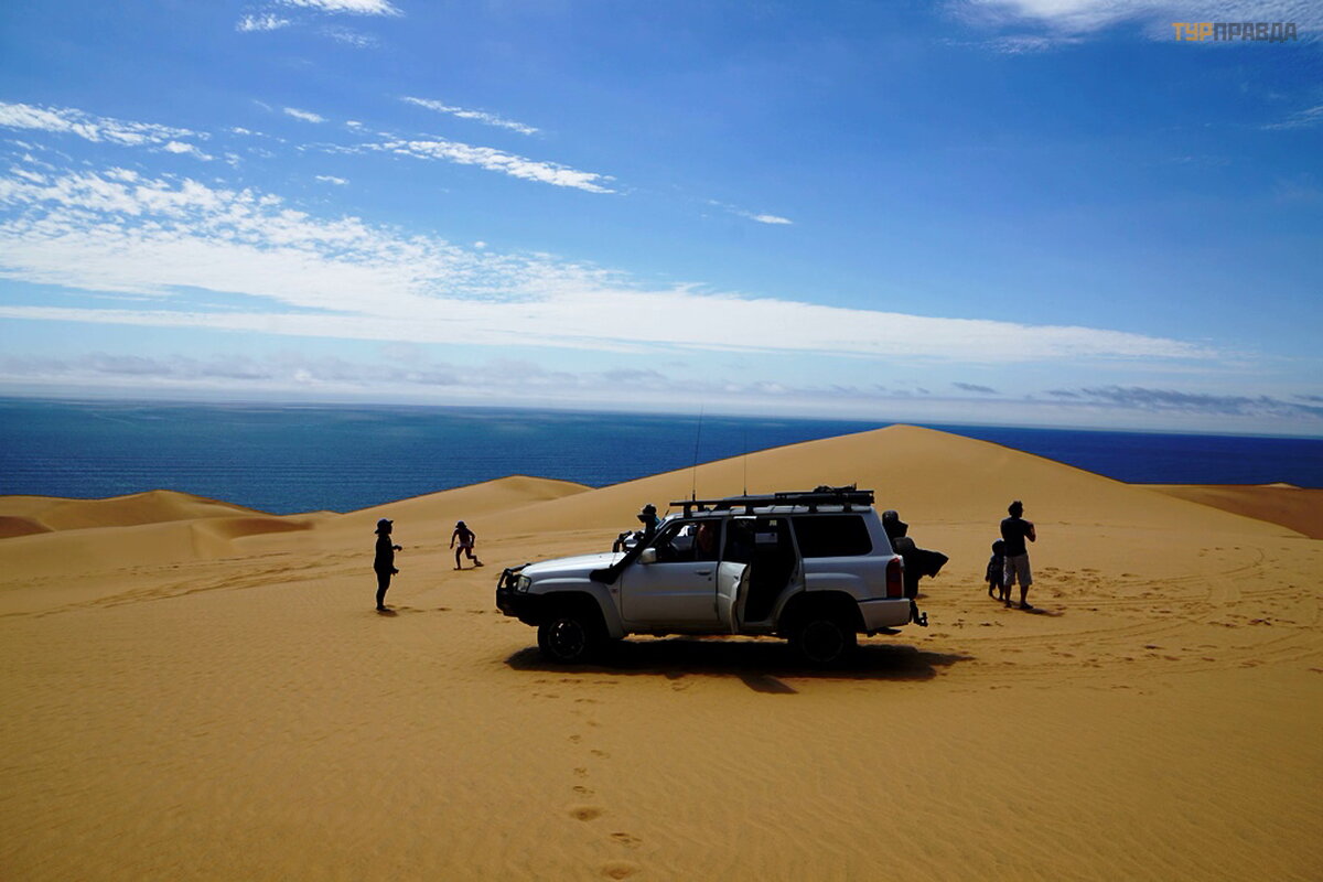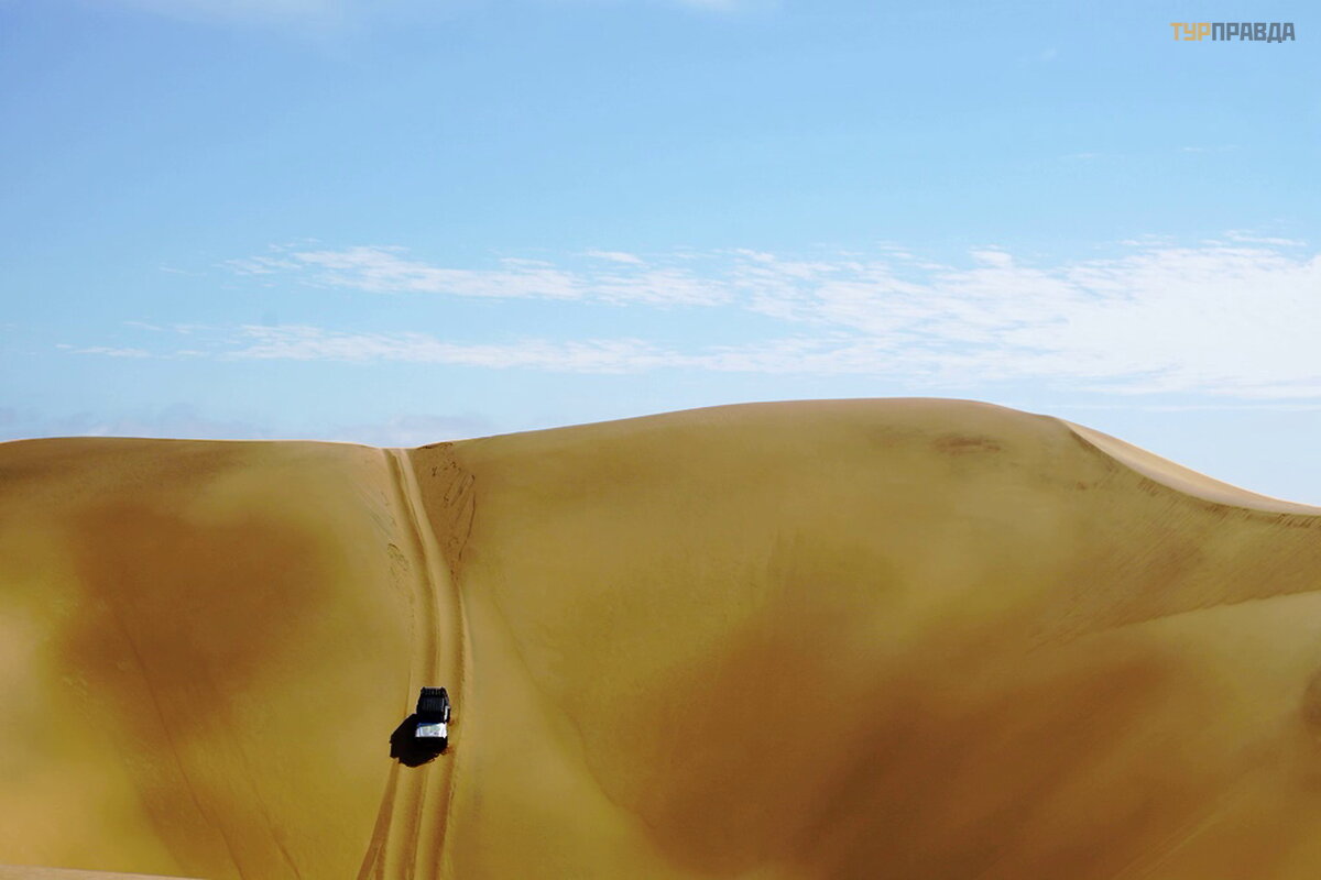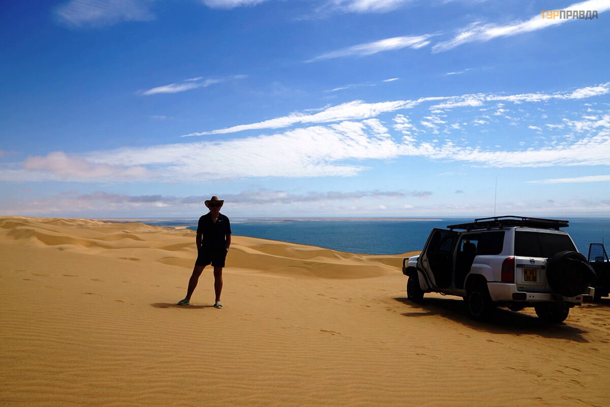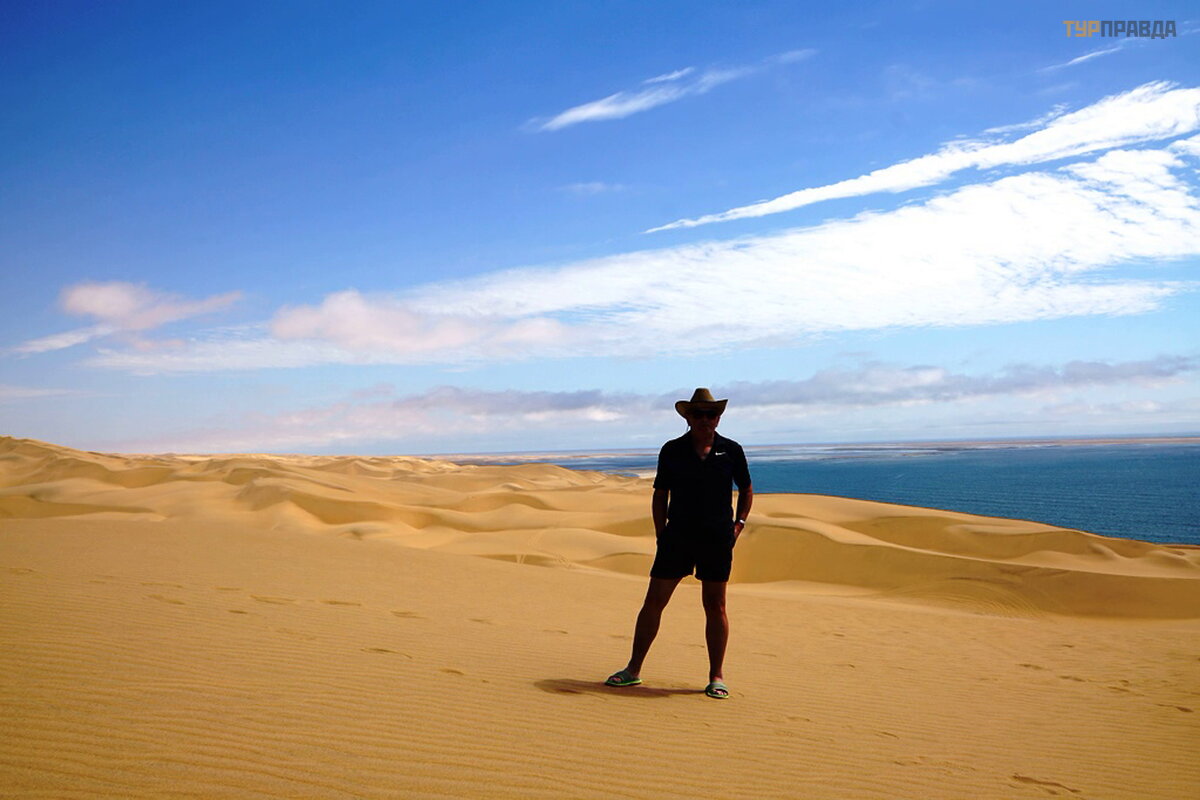 Safari na piaskach i wydmach Namibii są tak ciekawe, ż e musiał em kontynuować sesję zdję ciową . Nie spodziewał em się , ż e przejaż dż ka po wydmach bę dzie przeraż ają ca. Kierowca-przewodnik John ś cigał się z nami swoim Nissanem jak w wyś cigu Paryż -Dakar. Dziewczyny pisnę ł y, a moje serce bił o do pię t. Z duż ą prę dkoś cią jeep leci na szczyt wydmy, unoszą c się w powietrzu przednimi koł ami, a nastę pnie kiwa gł ową i leci w dó ł . To coś nie do opisania uczucie ekstremalne. Nigdy w ż yciu nie miał em takiego safari. Co prawda pamię tam pustynię Karakum, kiedy jeź dziliś my nowiutkimi ó semkami Zhiguli, ale nie był o tak strasznie, ale piaski mogł y nas zawieź ć samochodami na sam dach. Piaski i wydmy Namibii są prawdopodobnie najbardziej majestatycznymi i ogromnymi w kraju. Jest gorą co, ale na wydmach piasek jest jak rozgrzana patelnia. Johnowi kilka razy nie udał o się dostać na szczyt wydmy, a potem wycofaliś my się , co jest nie mniej przeraż ają ce. Mijaliś my zł oż a soli. Robi wraż enie. Czytał em, ż e nasze jelenie w tundrze nie mają doś ć soli, ale tutaj jest jej pod dostatkiem. Nie udał o się zobaczyć stad flamingó w. Gdzieś polecieli. Szkoda, choć flamingó w widział em już doś ć . Na wydmach byliś my w ś rodku, wię c wszystkie ż ywe stworzenia ukrył y się w piasku, chociaż widział em tylko ró ż ne ś lady. Moje safari zakoń czył o się bezpiecznie, choć kilka razy mogł o się przewró cić . Po raz kolejny był em przekonany, ż e Namibia to pię kny kraj i trzeba to zobaczyć . Chciał bym znowu wypić tego szampana.