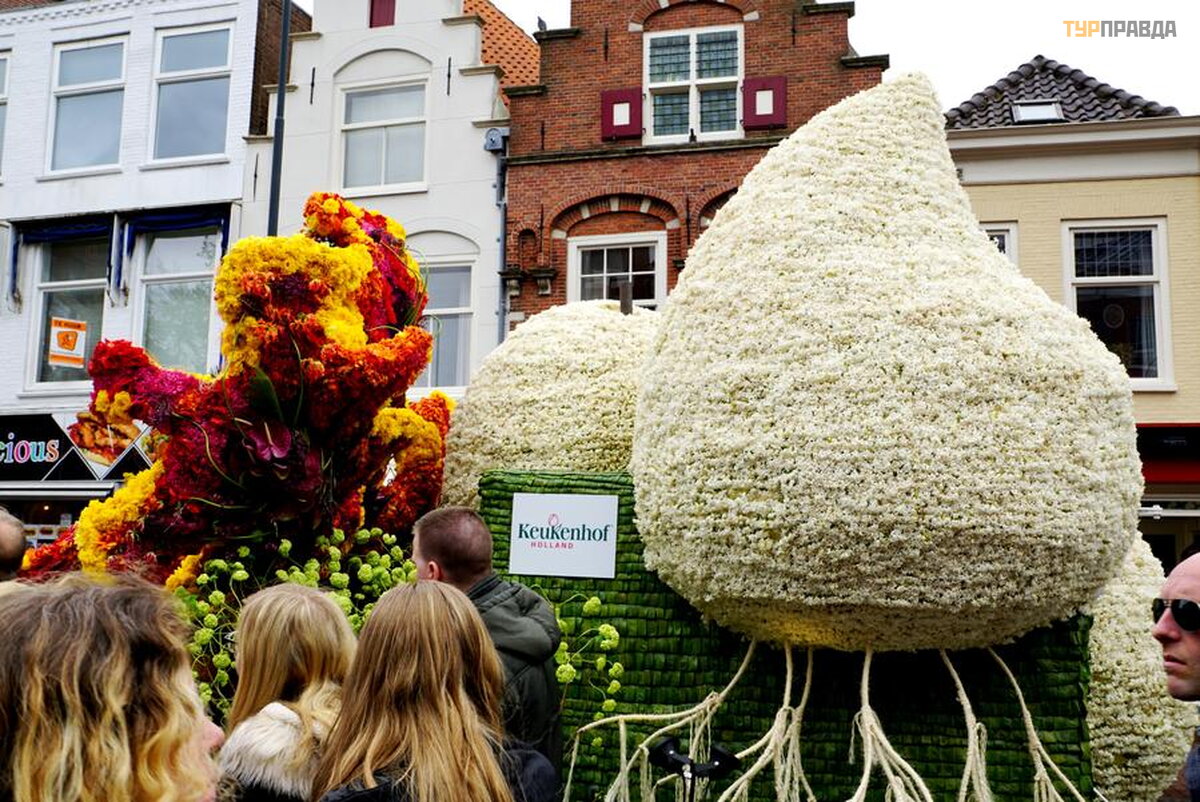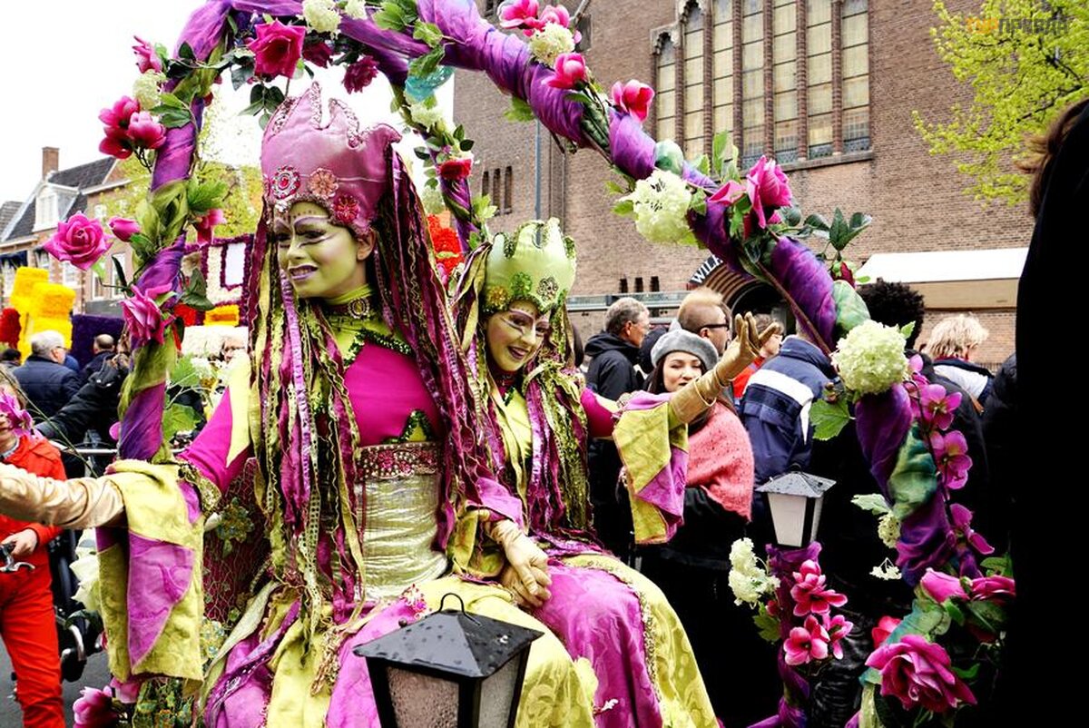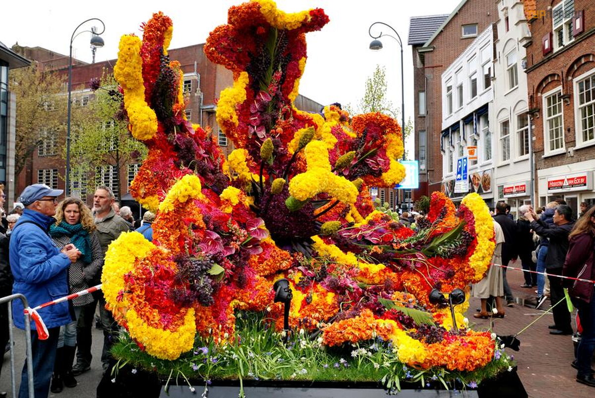 40-kilometrowa podró ż zaczyna się o 9:30 od uzdrowiska Noordwijk. Samochody ze wspaniał ymi bukietami ustawiają się w kolejce nad brzegiem morza, czekają c na rozpoczę cie parady, w pobliż u któ rej nieustannie pstrykają migawki aparató w. Wczesne kwiaty wykorzystywane są w kolorowych kompozycjach: hiacynty, ż onkile, lilie, gerbery, tulipany. W tym dniu cał y transport w mieś cie jest ozdobiony kwiatami. Począ tek procesji ogł asza burmistrz miasta. Na pierwszym podeś cie z kwiató w znajduje się tron dla kró lowej parady. Zawodowe stowarzyszenia okrę gu: straż acy, bankierzy, rolnicy, sygnalizatorzy i wspó lnoty narodowe prezentują publicznoś ci 20 udekorowanych platform.