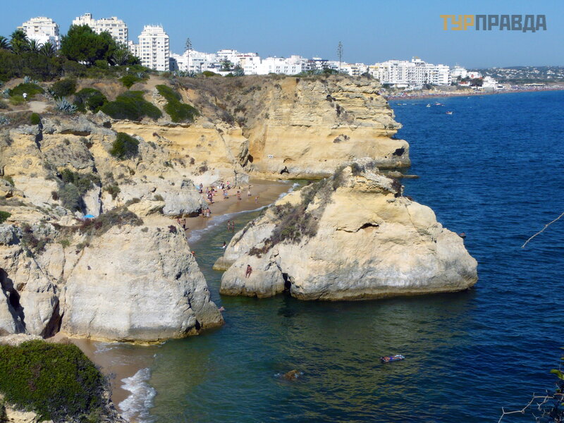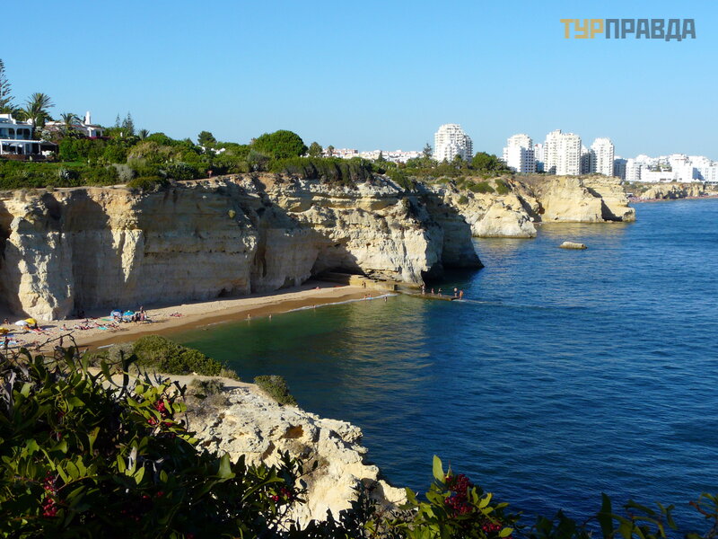 Na zachó d od Armacao de Pera rozcią ga się skaliste wybrzeż e, poprzecinane mał ymi zatoczkami i poł oż onymi nad nimi przytulnymi hotelami. Od strony oceanu wzdł uż wybrzeż a moż na był o się tam dostać tylko wą ską ś cież ką wiją cą się wzdł uż klifó w. Udał o nam się dojś ć wystarczają co daleko, aż ś cież ka zakoń czył a się napisem privat.