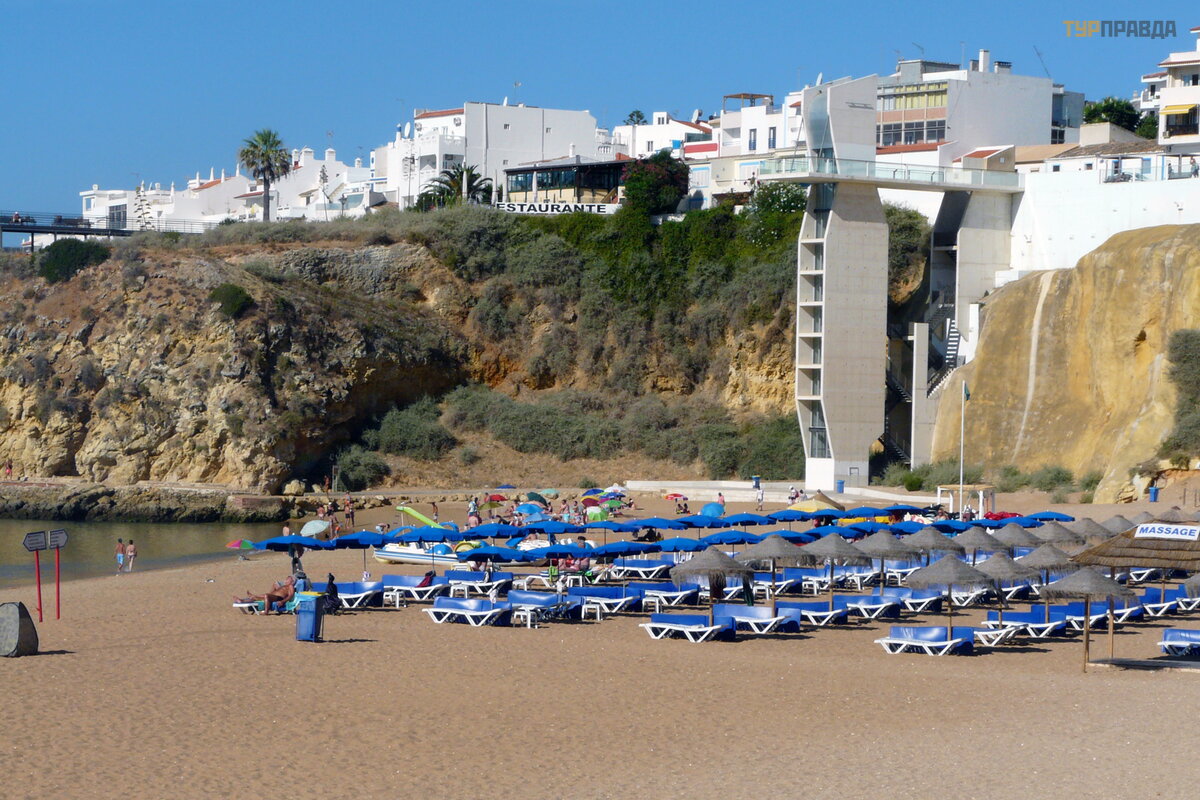 Przyjemne rybackie miasteczko ze ś nież nobiał ymi domami nad oceanem ostatecznie stał o się turystyczną stolicą Algarve. Rzymianie ró wnież upodobali sobie to miejsce i zbudowali tu zamek, któ remu pó ź niej Arabowie nadali nazwę Al-Bukhar – „Zamek nad Morzem”. W okresie panowania arabskiego rozwiną ł się tu aktywny handel z Afryką Pó ł nocną . W XIII wieku. zamek został zdobyty przez rycerzy Zakonu Santiago, a wynikają ca z tego utrata stosunkó w handlowych doprowadził a do upadku miasta.