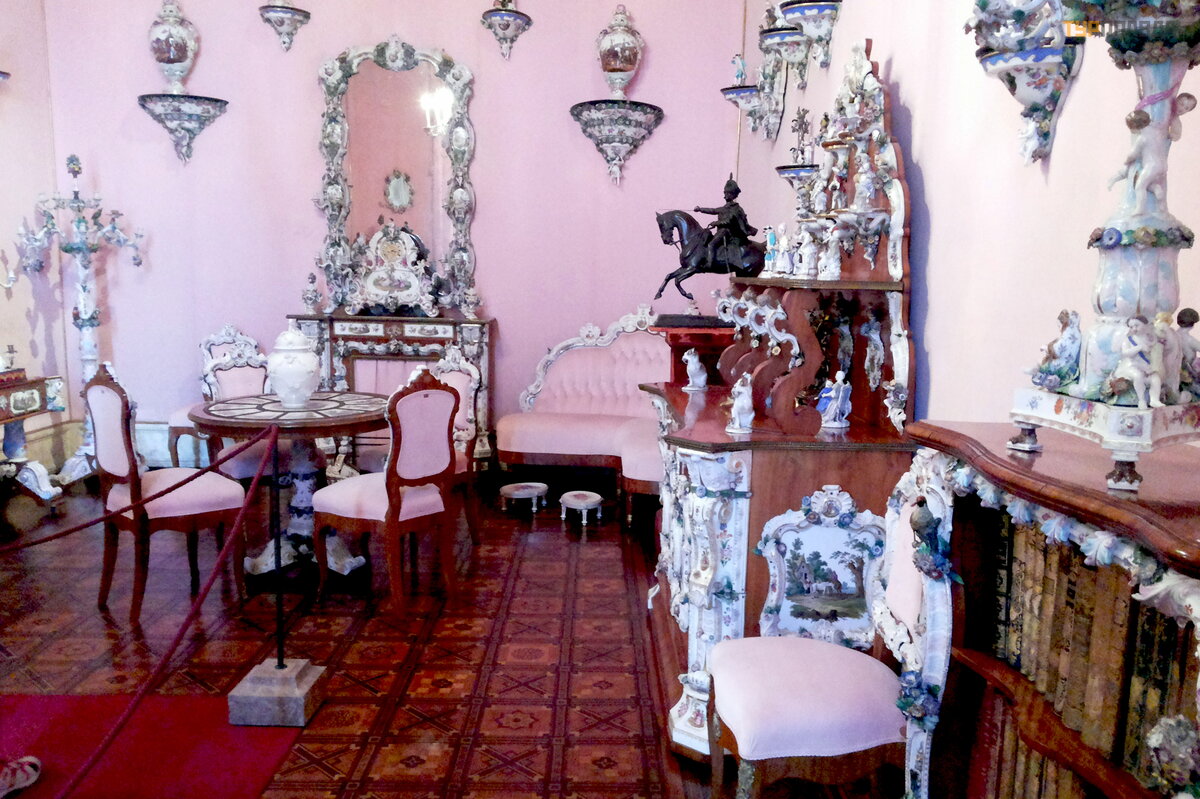 У входа во дворец стоит табличка, сообщающая о запрете фотографировать. И мы свято чтили правило, пока не заметили, что идущая следом пара местных туристов открыто фотографирует понравившиеся интерьеры… Правда, мы не осмелились снимать столь откровенно, поэтому фотографировали немного, быстро и, как оказалось, к сожалению, не всегда качественно. : (