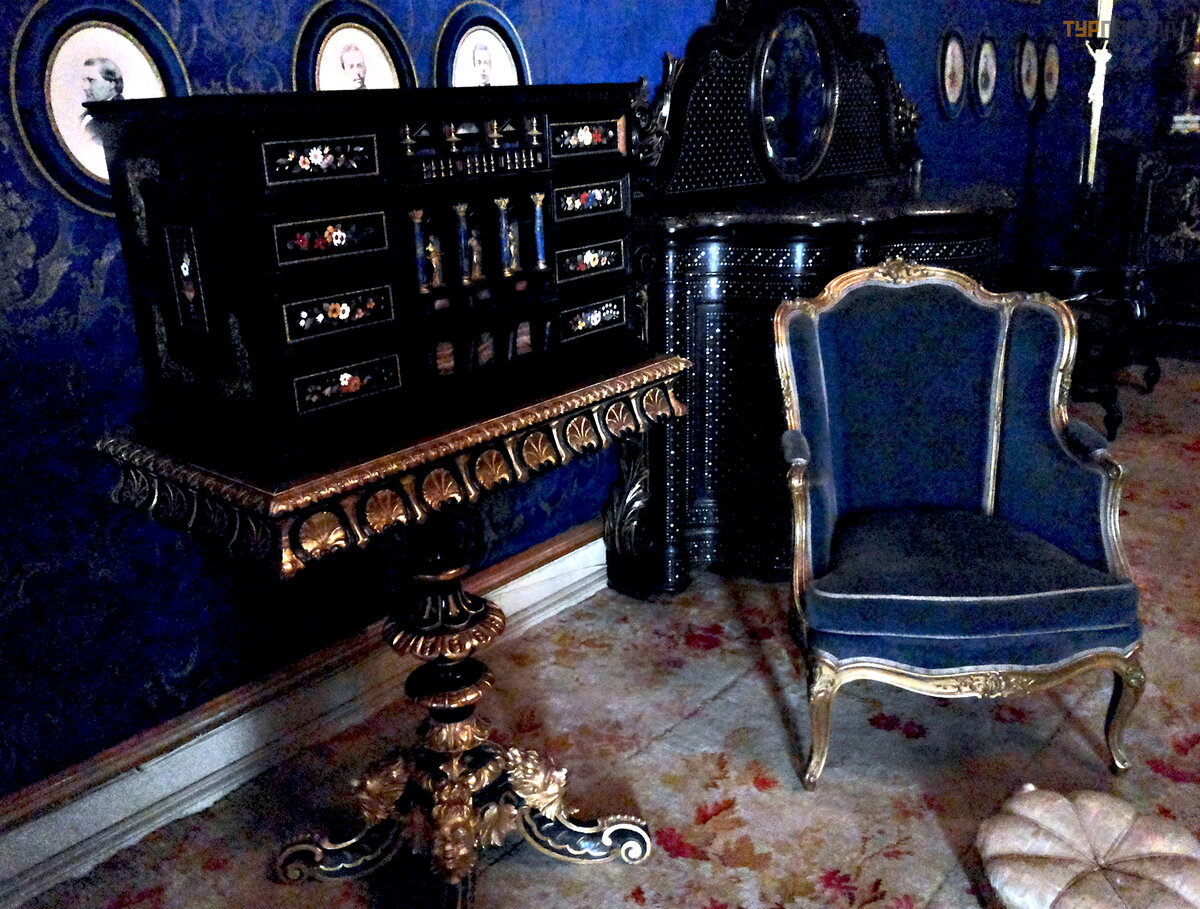 Дворец огромный, но его серый цвет с легкой обшарпанностью и кое-где отставшей штукатуркой, особенно после красивенного монастыря иеронимитов, сначала немного разочаровал и насторожил. Но закравшиеся сомнения рассеялись в первых же залах. Покои королевы, кабинет короля, биллиардная, столовая, ванные комнаты с проточной водой и предметами для гигиены… Танцевальный зал, Банкетный и Тронный залы, Зимний сад… Резная позолоченная мебель, старинные гобелены, коллекции мейсенского и севрского фарфора, великолепные хрустальные люстры и канделябры, художественные полотна известных живописцев, а также подлинные рисунки, сделанные членами королевского семейства – все это впечатляет изысканностью и красотой.