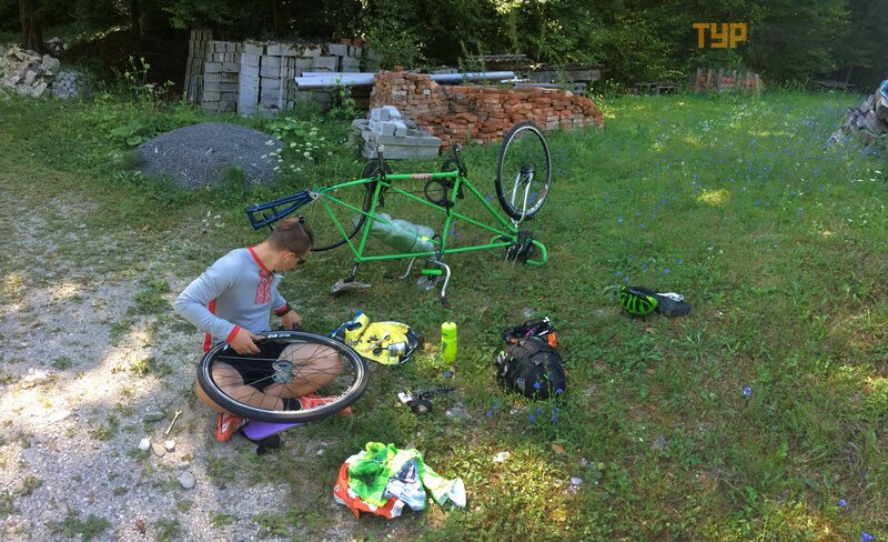 TandemTravelers : Trudny zjazd + tandem + przyczepa = zablokowane hamulce i ich całkowita awaria.