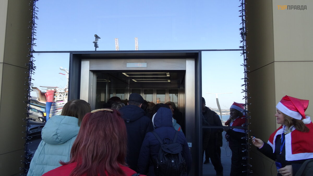 С берега в город поднимает лифт.