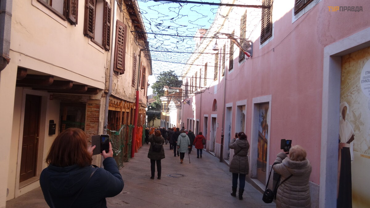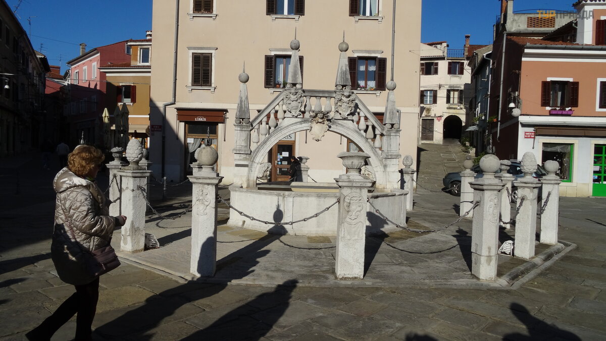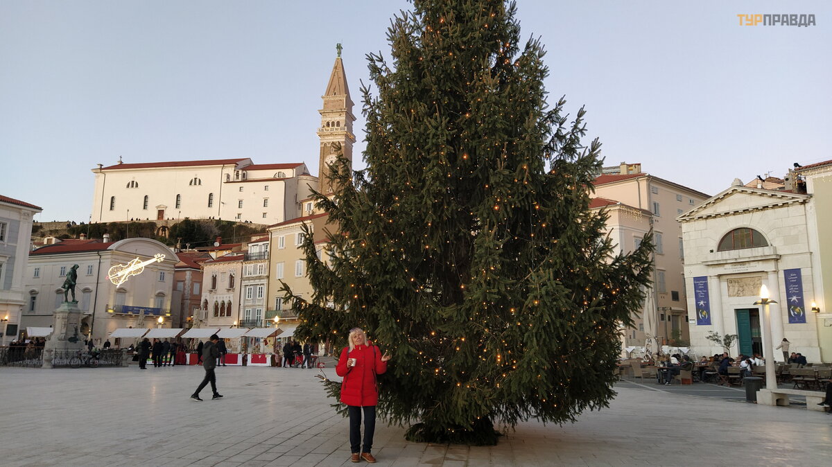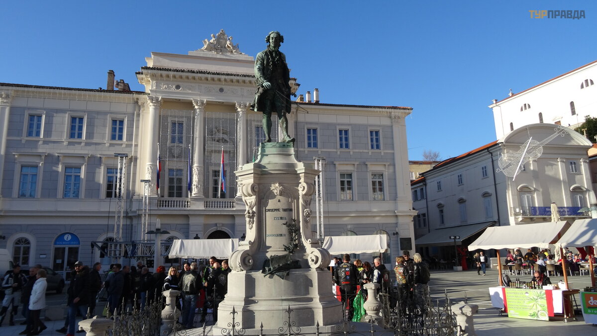 Dzień jest już w peł nym rozkwicie i już przez tł um kierujemy się na centralny plac. Prawie cał e miasto to strefa dla pieszych. Trasa rozpoczę ł a się od placu Tartini, gdzie znajduje się pomnik G. Tartiniego, skrzypka i kompozytora pochodzą cego z Piranu, na plac i teatr nazwany jego imieniem.