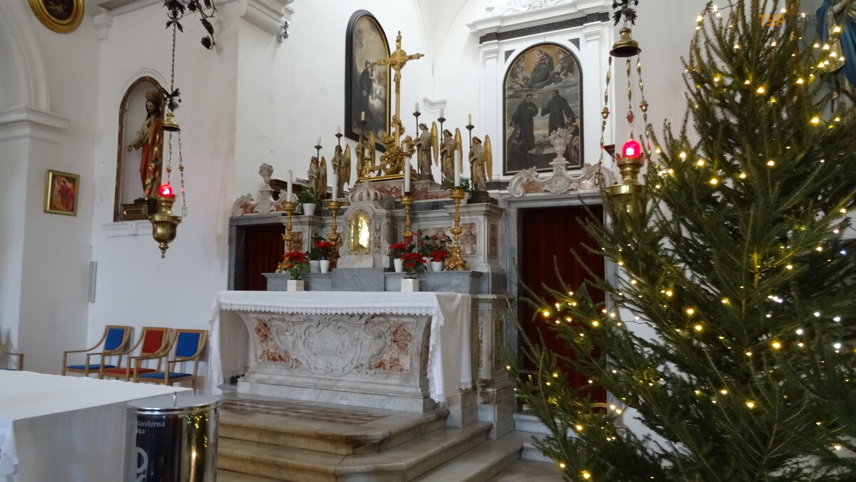 Na placu znajduje się Katedra Wniebowzię cia Najś wię tszej Marii Panny, prace budowlane rozpoczę to w XII wieku, pó ź niej w XIV wieku dobudowano dzwonnicę . Dzwon odlał rzemieś lnik z Wenecji. Na wież ę moż na się wspią ć , ale nie chodzi o nas, w jakikolwiek sposó b naszym galopem.