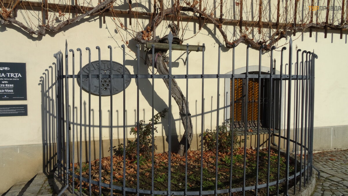 Winiarnia Mirabol jest jedną z najstarszych w Europie, a winoroś l jest najstarsza na ś wiecie. Teraz jest tu muzeum, ale 1-2 stycznia wszystko jest zamknię te, dzień wolny, ale nadal nie wchodzimy - galop.