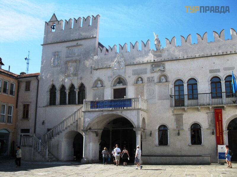 Pał ac Pretorianó w to najsł ynniejszy budynek Koper, najpię kniejszy pał ac w stylu weneckiego gotyku z XV wieku, naprzeciwko Pał acu Loggia na placu, posiada galerię sztuki. Patrzymy, robimy zdję cia i nie rozumiemy, dlaczego nie ma tutejszych ludzi, jest jakoś opustoszał e.