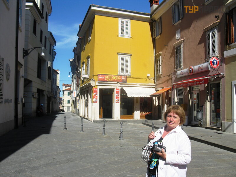 Mapa to mapa i podą ż amy za ludź mi po schodach na zbocze, patrzymy na starą fortecę , potem mijamy opustoszał ą ulicę i wychodzimy na centralny plac, gdzie prawie wszystkie zabytki Koper p>