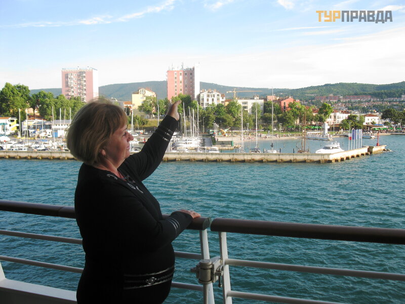 A na molo grał a muzyka (koncert orkiestr dę tych)! Wydawał o się , ż e wszyscy Koper wylali się na nasyp i machali do nas rę kami, ż egnają c się . Statek wypł yną ł w morze, a my pojechaliś my przygotować się do przyję cia kapitana.