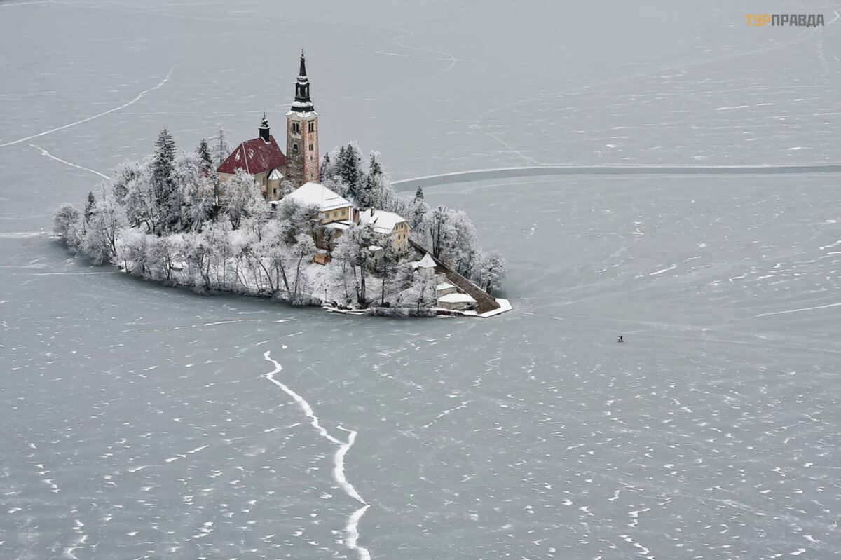 Na ś rodku jeziora Bled znajduje się niewielka wyspa, na któ rej znajduje się kaplica o tej samej nazwie, to ona nadaje miejscom pocztó wkowy wyglą d, na wyspę moż na się dostać mał ymi ł ó dkami.