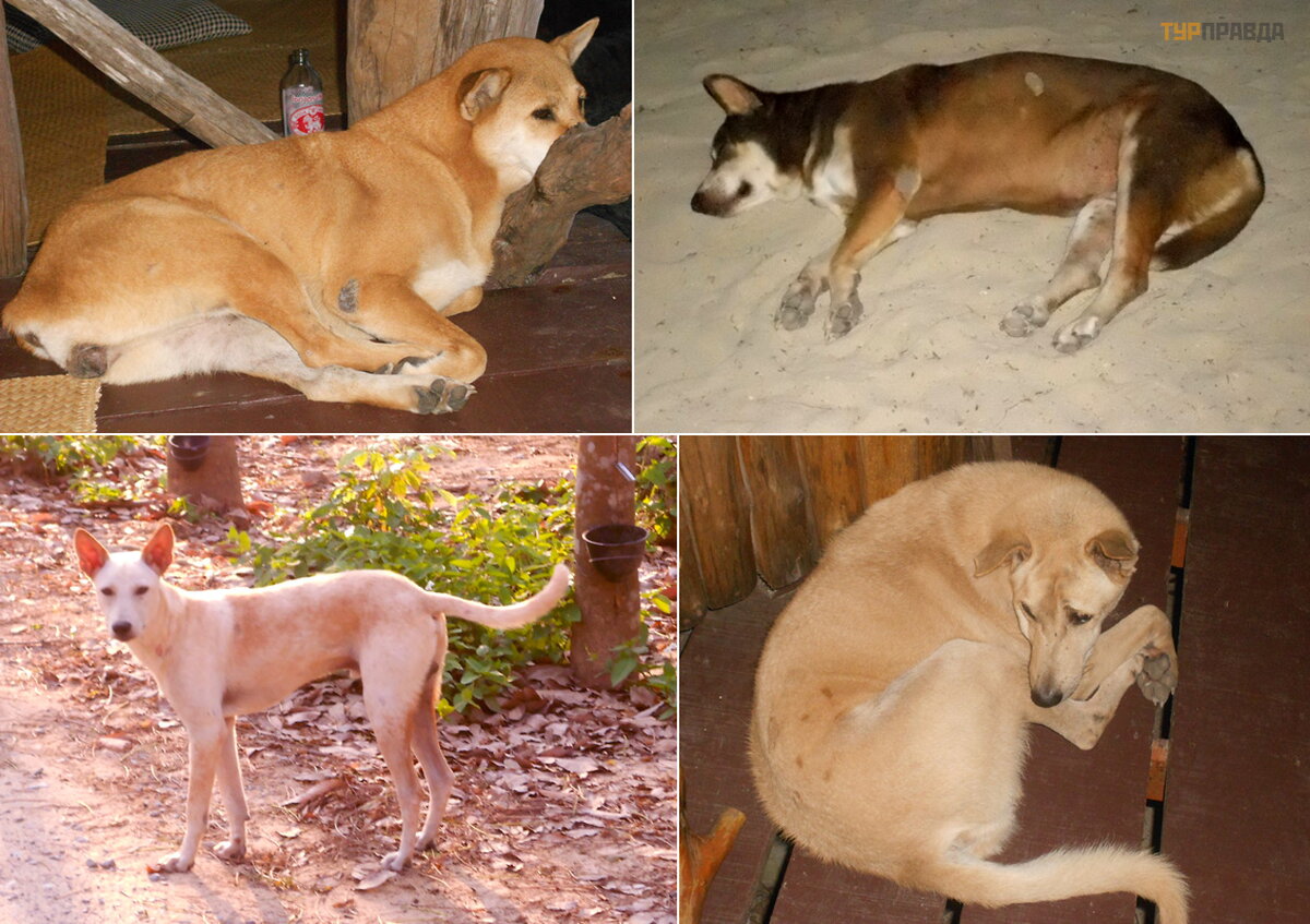 Собаки отираются на Ко Чанге везде – на пляжах, в магазинах, в кафешках. Особой агрессии они не проявляют, тайцы их не бьют и не гоняют. Но подкармливать животных во время еды в ресторане запрещено, более того, устрашающие надписи на транспарантах предупреждают и том, что укушенного собакой туриста еще и оштрафуют.