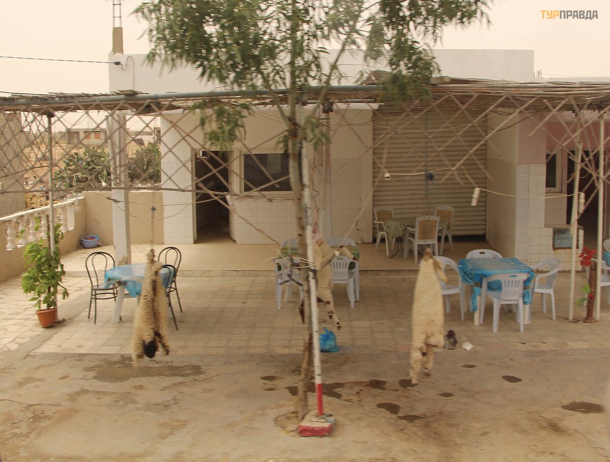 Nastę pnie udaliś my się na poł udnie kraju w kierunku pustyni, po drodze zatrzymaliś my się przy mieś cie rzeź b, niestety nie pamię tam jego nazwy. Co wię cej, w miarę przesuwania się w gł ą b lą du zmienia się krajobraz, gaje oliwne są zastę powane rzadszą roś linnoś cią , któ ra z kolei ustę puje miejsca pustynnym krajobrazom. Pamię tam też mał ą wioskę , w któ rej przy każ dym domu wisiał y tusze i skó ry baranó w, ludzie przygotowywali się do jakiegoś muzuł mań skiego ś wię ta.