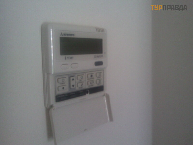 Najpierw poszliś my do pokoju rodzicó w, tak jak to był o na pierwszym pię trze. Otworzywszy drzwi kartą , któ rej nie trzeba był o tu trzymać , a jedynie przynieś ć , weszliś my. Numer został natychmiast jednogł oś nie zatwierdzony! Duż e ł ó ż ko, centralna klimatyzacja z pilotem na ś cianie, panoramiczne okno i balkon. Patrzą c trochę w przyszł oś ć , powiem, ż e rodzice mają szczę ś cie! Dostali pokó j z dwó ch stron - okno z widokiem na hotel "Vera Mare" (ten, w któ rym nie ma miejsca dla samotnych mę ż czyzn) i wydł uż ony balkon z widokiem na morze!