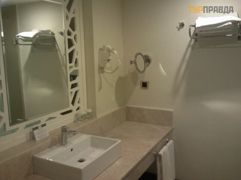 Pokoje miał y duż ą umywalkę , suszarkę do wł osó w, akcesoria prysznicowe, rę czniki, a nawet telefon w toalecie! ! ! Ł azienka był a tu oddzielna, nie był o wanny, ale był prysznic - prysznic rę czny i duż y na gó rze.