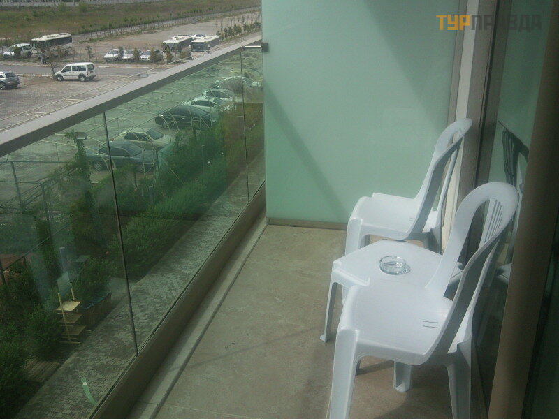 Hotel był nowy, wybudowany w 2013 roku, jeden hotel ze znanego mi już „Syjamu”. Po przeczytaniu opisu wszystko mi odpowiadał o, z wyją tkiem jednej rzeczy – „Palenie w pokojach jest zabronione! ”. Przydatne do szukania recenzji. Natkną ł em się na ś wież y, prawie o paleniu, któ ry mó wił , ż e moż na palić na balkonie! Aranż uje! Jak dowiedział em się w Stambule, palenie tam, gdzie jest dach, jest ogó lnie zabronione w Turcji, ale w okolicach kurortu w dobrych hotelach moż esz!